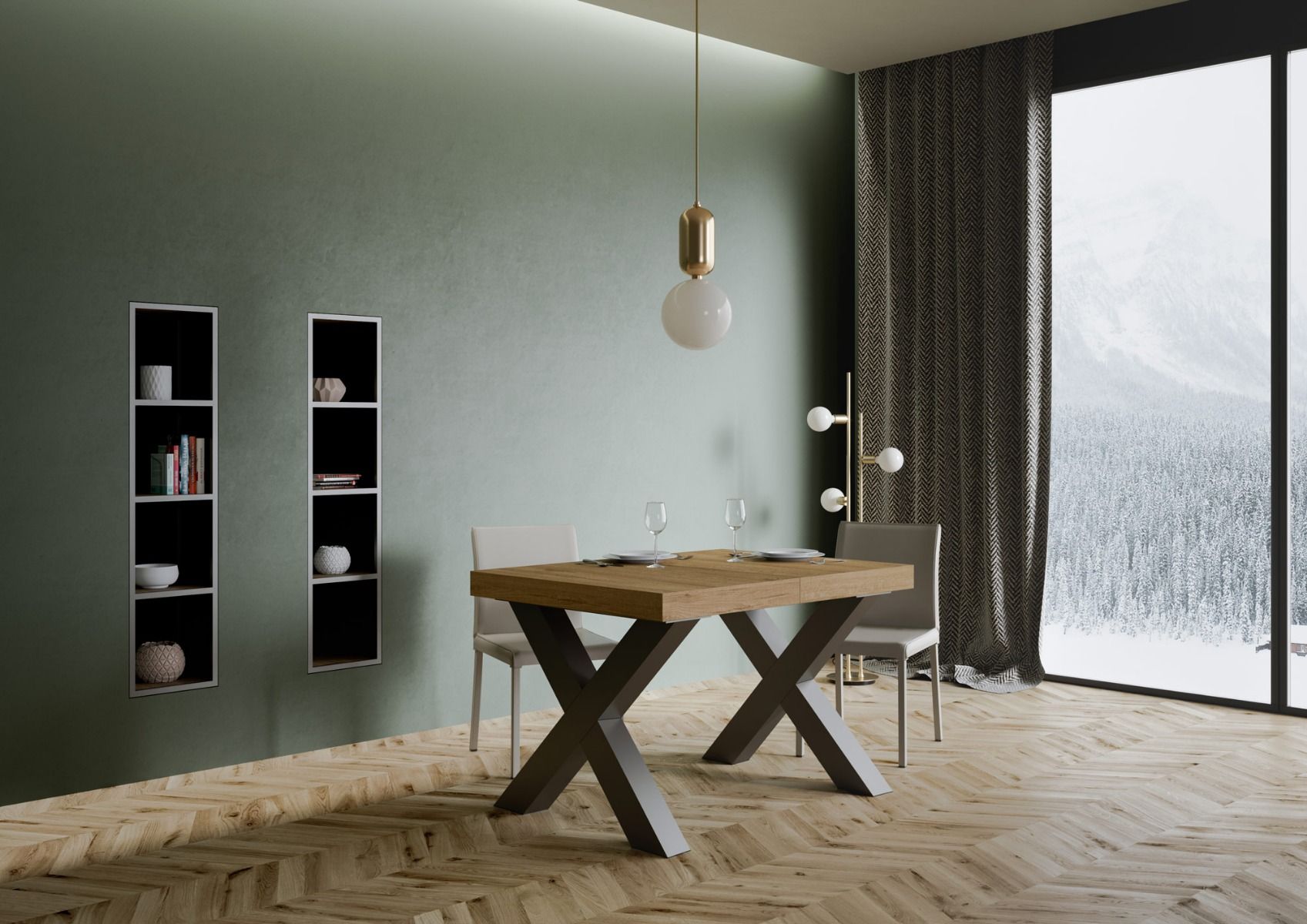 Table extensible Traffic de 130 cm, dotée d'un design industriel, cette table s'adapte à tous les styles d'aménagementet se révèle être le choix idéal à la fois comme table à manger et comme élément de décoration pour le salon, permettant d'accueillir vos invités avec style. La table extensible Traffic peut s'étendre progressivement jusqu'à 234 cm capable d'accueillir 10 personnes. Table réalisée avec des panneaux en mélaminé, des pieds en fer, plateau usiné avec une finition de type Folding. Le système d'extension avec des guides télescopiques en aluminium rend la table stable et robuste même lorsqu'elle est totalement allongée, sans avoir besoin de supports supplémentaires. Les extensions sont immédiatement prêtes à être utilisées car elles sont logées sous le plateau principal. Produit Itamoby Made in Italy Dimensions: Table fermée: L.130 P.90 H.77 cm Longueur avec 1 extension: 182 cm Longueur avec 2 extensions: 234 cm