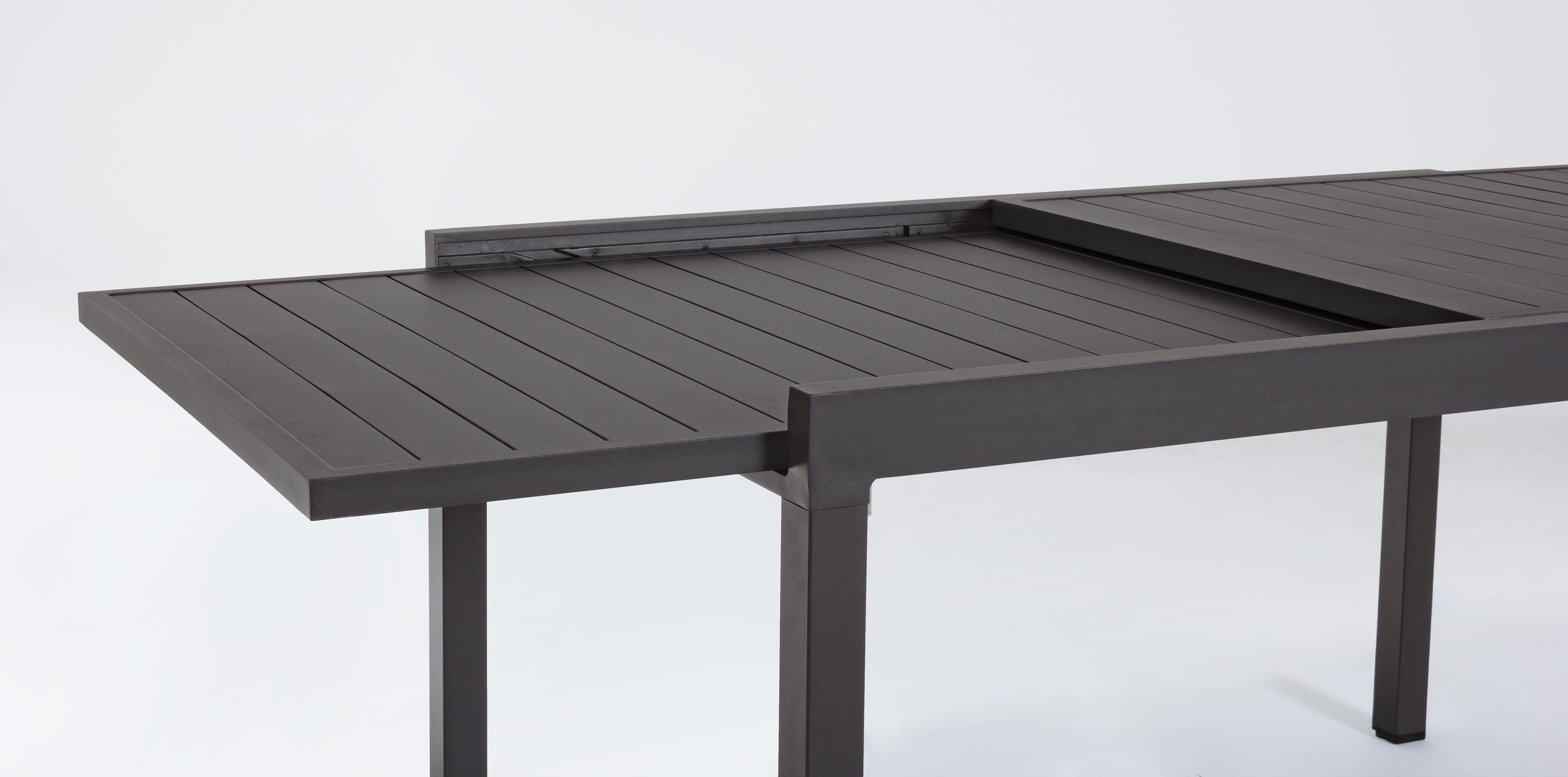 Grâce à cette table extensible de jardin vous serez vraiment heureux. De forme rectangulaire, elle est très pratique mais aussi très chic. Vous pourrez changer sa taille comme bon vous plaira et ce sera un vrai atout pour votre jardin. Sa couleur anthracite prouve son élégance. Ce sera un plaisir pour vous de vous y attabler. Matière : Aluminium Couleur : Anthracite Dimensions : L 135/270 x P 90 x H 75 cm Nombre de colis : 1 Fabrication : Espagne A monter Garantie : 2 ans