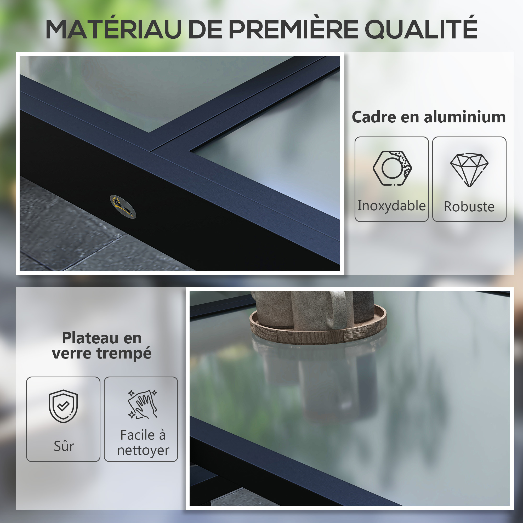 | Libellé | Table extensible de jardin grande taille dim. dépliées 160L x 80l x 75H cm alu métal époxy anthracite plateau verre trempé transparent |