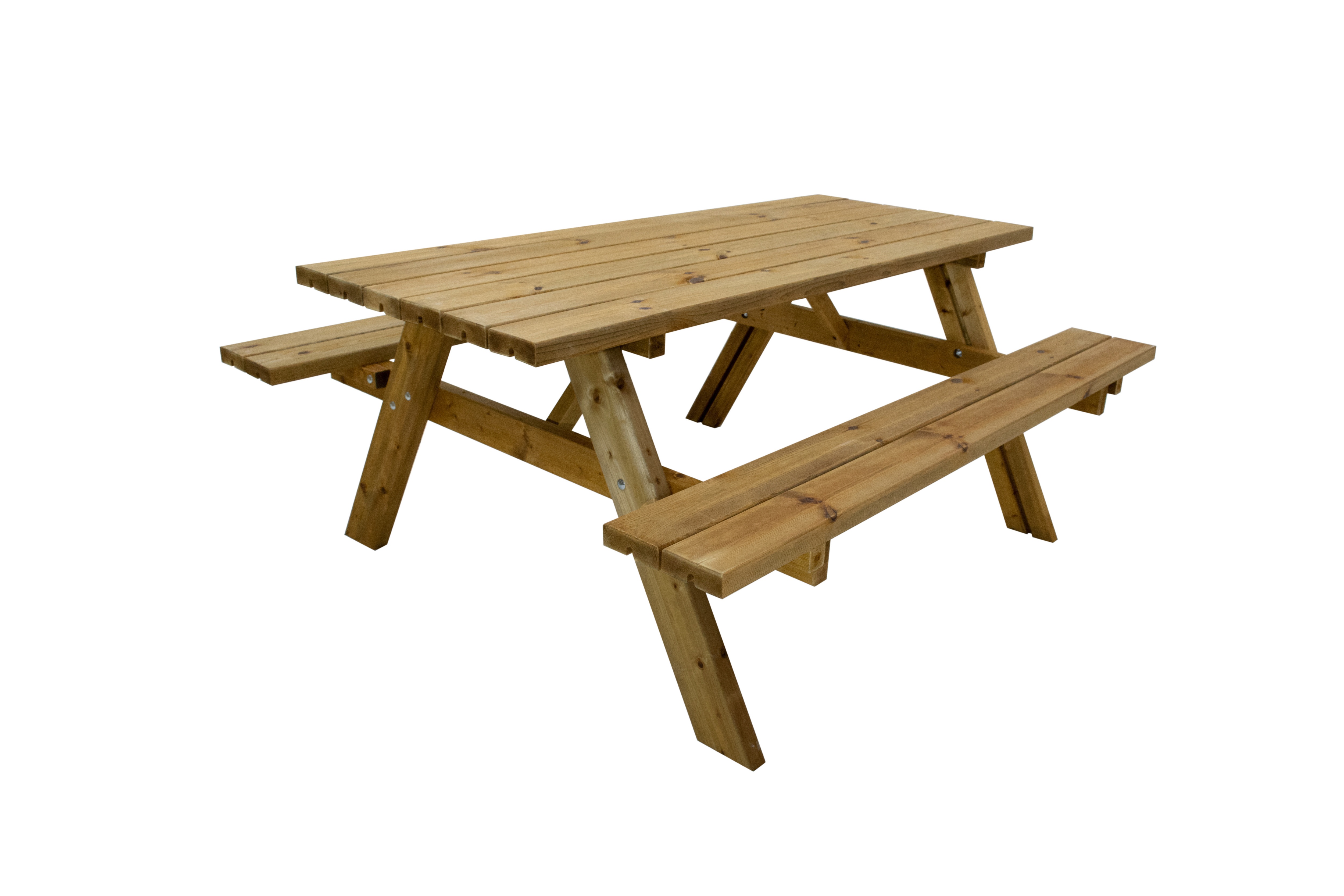 | Libellé | table forestière en pin du nord de l'europe fsc traité en autoclave teinté brun dim 177x153xh76 cm, épaisseur plateau 42 mm, bancs pliables. à monter |