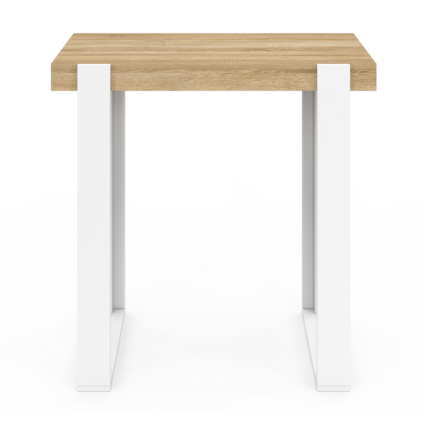 La table haute de bar PHOENIX pour 2 personnes en bois et blanc optimisera l'espace dans votre cuisine ! L'association des pieds en bois blanc et du plateau en bois clair s'adaptera à tout type d'intérieur et apportera modernité et style dans votre salle à manger. Profitez de son grand plateau d'une longueur de 90 cm pour prendre le petit-déjeuner, manger sur le pouce ou prendre un apéritif en amis ! Dotée d'une structure à l'aspect massif et d'un plateau robuste, cette table haute de bar PHOENIX aux lignes sobres et épurées peut également faire office de bureau d'appoint pour vos journées de télétravail à la maison.Avec ses pieds reliés entre eux pour une meilleure stabilité, cette table haute de bar ultra design vous assure solidité et stabilité. Laissez-vous séduire par cette table haute de bar PHEONIX bois et blanc 90 cm à prix mini ! Dimensions de la table haute de bar PHOENIX bois et blancDimensions globales : Longueur 90 x largeur 60 x Hauteur 90 cm Espace entre les pieds : 57 cmLargeur des pieds : 9 cmÉpaisseur des rebords du plateau : 6 cmMatériaux : panneaux de particules (PB) mélaminés Coloris : bois et blancÀ associer par exemple avec nos tabourets de bar KARL design blanc pied noir ! Ce modèle est également disponible en coloris bois et noir.Découvrez toute notre collection PHOENIX sur notre boutique en ligne !