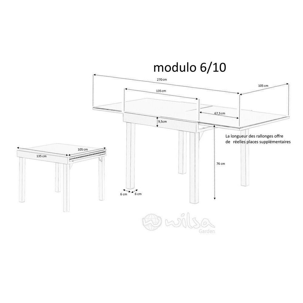 | Libellé | Table jardin Modulo 6 à 10 personnes |