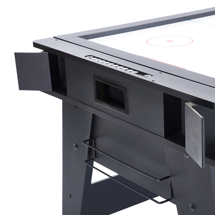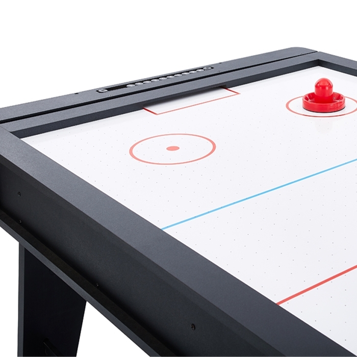 La surface d'air hockey 160,8 x 82,3 cm vous offrira une vitre dotée de ventilateurs pour une qualité de glisse professionnelle. Elle est livrée avec deux palets et deux pads, notre table multi-jeux 2 en 1 étant utilisable dès réception.