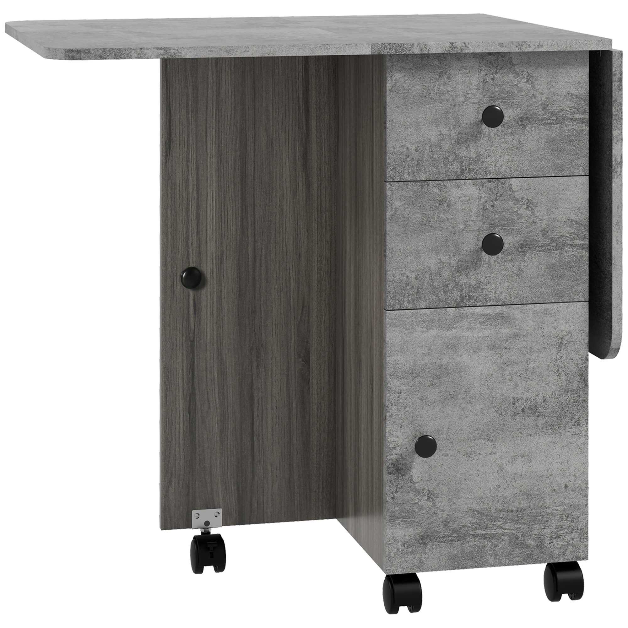 | Libellé | Table pliable de cuisine salle à manger - 2 tiroirs, placard, niche - panneaux aspect bois béton ciré gris |