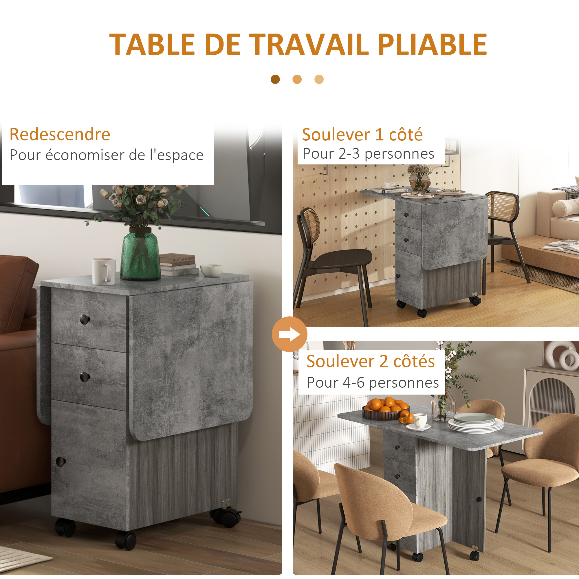 - Table pliable sur un seul côté ou les deux pour optimiser votre espace