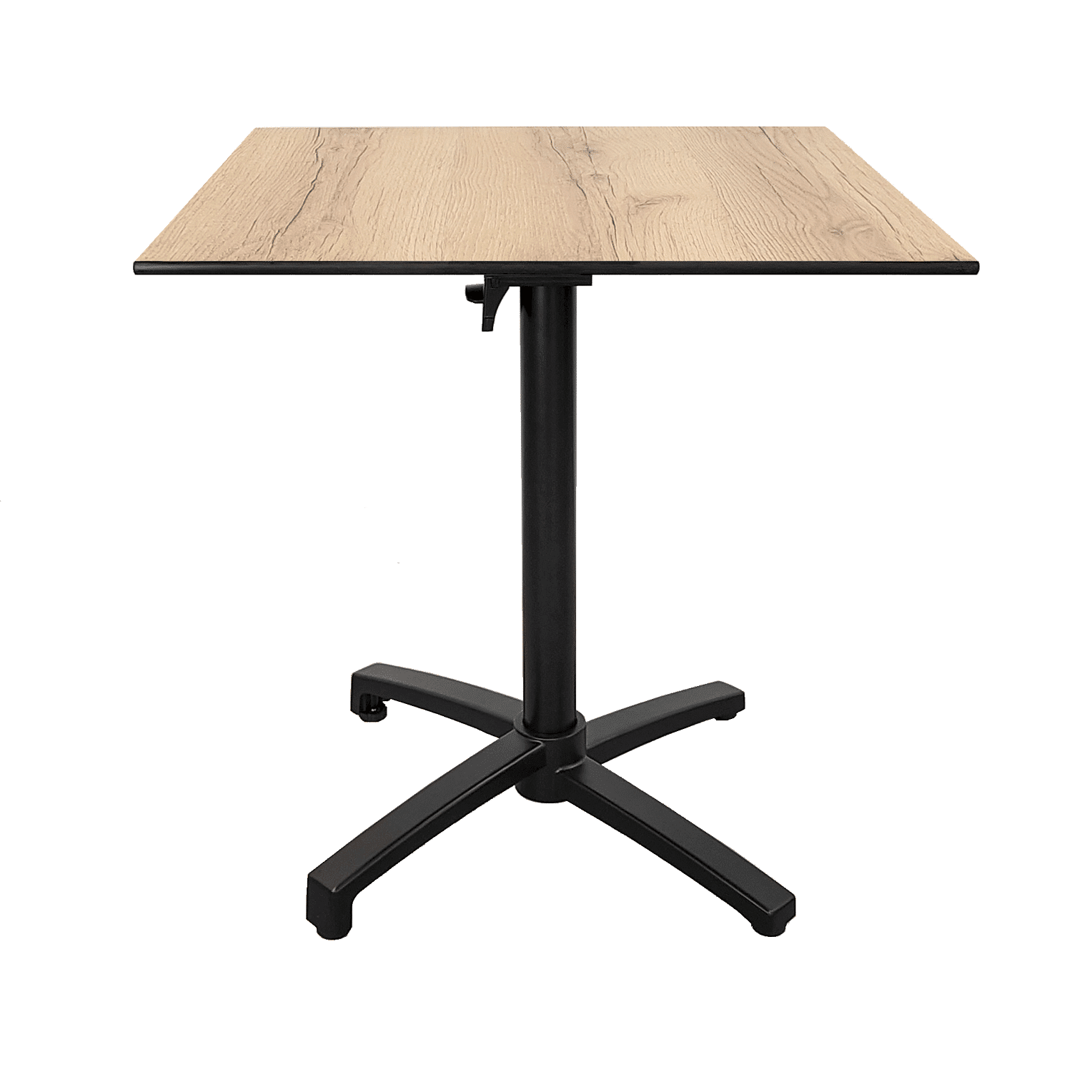 Table pliable pour terrasse en Compact HPL décor bois chene 70x70