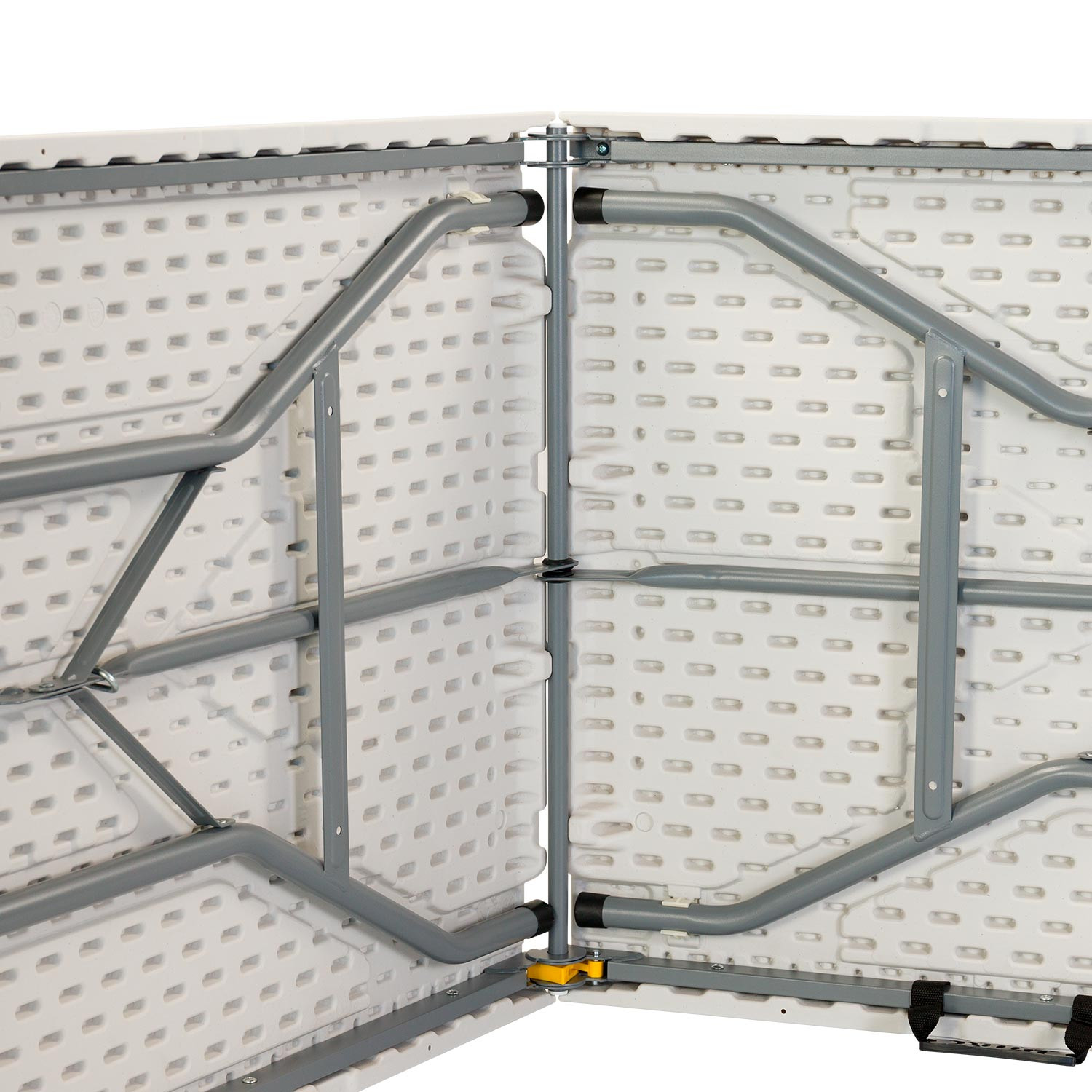 Équipée d'un mécanisme de verrouillage de sécurité, cette table pliante garantit la fermeté, évitant les mouvements inattendus. Grâce à son design compact une fois plié, son rangement et son transport deviennent très simples, ce qui en fait un choix idéal pour les espaces extérieurs, ainsi que pour la restauration d'événements ou d'escapades à la campagne. Fabriquée avec des matériaux de première qualité, elle allie la durabilité de la résine à la résistance de l'acier, lui conférant une capacité de charge maximale de 150 kg.