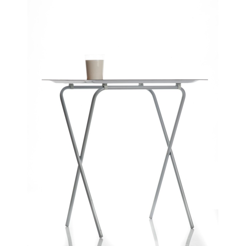 | Plus produit | Facile à plier. Les pieds sont assemblés et démontés en un geste, avec un peu de pression. Le plateau peut être utilisé comme plateau de service une fois la table retirée. Plateau stratifié très résistant. Large gamme de motifs disponible. |