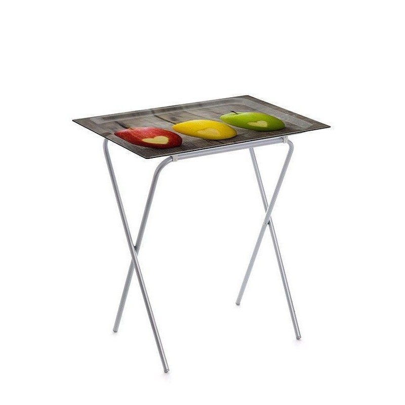 PETITE TABLE PLIANTE AVEC PLATEAU AMOVIBLE, ADATable pliante idéale pour manger dans le fauteuil. Parfaite pour l'utiliser comme table d'appoint sur la terrasse, le balcon, à la piscine, au camping, ect.... Excellente résistance et durabilité.Pliage facile. Les pieds de la table se fixent au plateau supérieur à pression.Le plateau peut être utilisé comme plateau de service une fois que les pieds ont été enlevés.Occupe très peu d'espace une fois pliée.Pieds métallique avec revêtement en poudre de polyester couleur gris aluminium pour éviter la corrosion dans les environnements humides et garantir une longue durée de vie pendant de nombreuses années.Plateau de 62 x 42 cm. en bois stratifié, résistant aux hautes températures, produits de nettoyage...Différents motifs disponibles.Large gamme de décorations de plateaux disponibles.Produit léger et stable. Table facile d'entretien.Résistance aux taches et nettoyage facile. Astuces:- Utilisez un chiffon humide.- N'utilisez pas de produits de nettoyage chimiques.Dimensions de la table ouverte: 65,5 ( Hauteur ) 61,5 (Largeur ) 42 ( Profondeur ) cm.Belle table d'appoint, pratique et compacte. Idéale pour un balcon ou une terrasse.