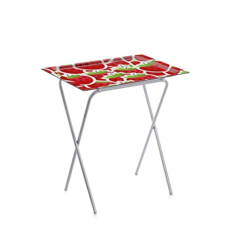 PETITE TABLE PLIANTE AVEC PLATEAU AMOVIBLE, ADATable pliante idéale pour manger dans le fauteuil. Parfaite pour l'utiliser comme table d'appoint sur la terrasse, le balcon, à la piscine, au camping, ect.... Excellente résistance et durabilité.Pliage facile. Les pieds de la table se fixent au plateau supérieur à pression.Le plateau peut être utilisé comme plateau de service une fois que les pieds ont été enlevés.Occupe très peu d'espace une fois pliée.Pieds métallique avec revêtement en poudre de polyester couleur gris aluminium pour éviter la corrosion dans les environnements humides et garantir une longue durée de vie pendant de nombreuses années.Plateau de 62 x 42 cm. en bois stratifié, résistant aux hautes températures, produits de nettoyage...Différents motifs disponibles.Large gamme de décorations de plateaux disponibles.Produit léger et stable. Table facile d'entretien.Résistance aux taches et nettoyage facile. Astuces:- Utilisez un chiffon humide.- N'utilisez pas de produits de nettoyage chimiques.Dimensions de la table ouverte: 65,5 ( Hauteur ) 61,5 (Largeur ) 42 ( Profondeur ) cm.Belle table d'appoint, pratique et compacte. Idéale pour un balcon ou une terrasse.