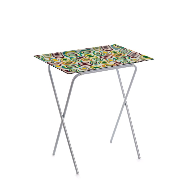 | Plus produit | Facile à plier. Les pieds sont assemblés et démontés en un geste, avec un peu de pression. Le plateau peut être utilisé comme plateau de service une fois la table retirée. Plateau stratifié très résistant. Large gamme de motifs disponible. |