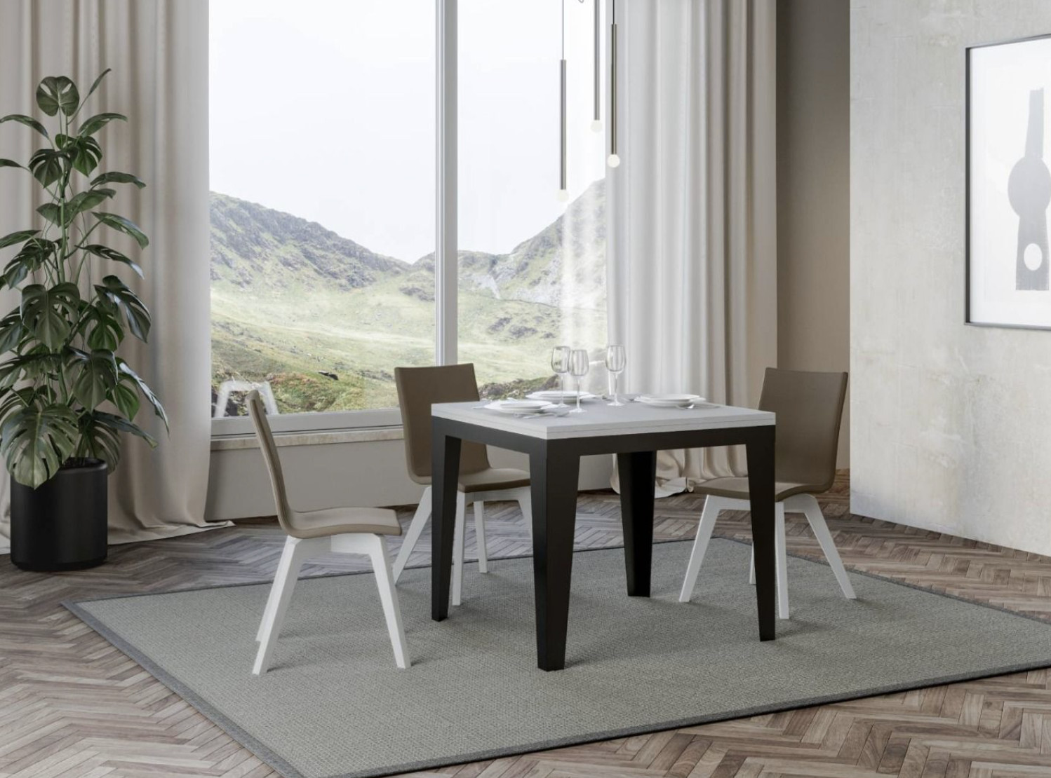 Apportez une solution pratique et élégante à votre espace avec la table pliante Librio, conçue pour s'adapter à tout style d'ameublement. Avec son design linéaire, simple et essentiel, cette table est parfaite pour toute situation ou besoin d'espace, que ce soit pour un usage quotidien ou pour des occasions conviviales où plus d'invités sont attendus. Caractéristiques et Dimensions Dimensions (fermée): L 90 x P 90 x H 80 cm Dimensions (ouverte): L 180 x P 90 x H 78 cm Nombre de places: 4 à 6 Poids: 44 kg (livré en 3 colis) Matériaux et Construction Plateau: Bois mélaminé de haute qualité Pieds: Acier peint anthracite Structure: Acier mat anthracite Mécanisme: Le mécanisme d'ouverture rabattable permet de doubler la surface du plateau en quelques étapes simples, offrant une grande flexibilité d'utilisation Coloris Disponibles Gris ciment Chêne naturel Marron noyer Blanc Qualité et Fabrication Garantie: 5 ans Fabrication: Italienne Assemblage: À monter Avec la table pliante Librio, combinez style et praticité dans votre espace de vie. Sa capacité à doubler sa surface en fait un choix idéal pour les petits espaces ou pour les moments où vous avez besoin d'accueillir plus d'invités. Option(s) sélectionnée(s) : - Couleur : Blanc