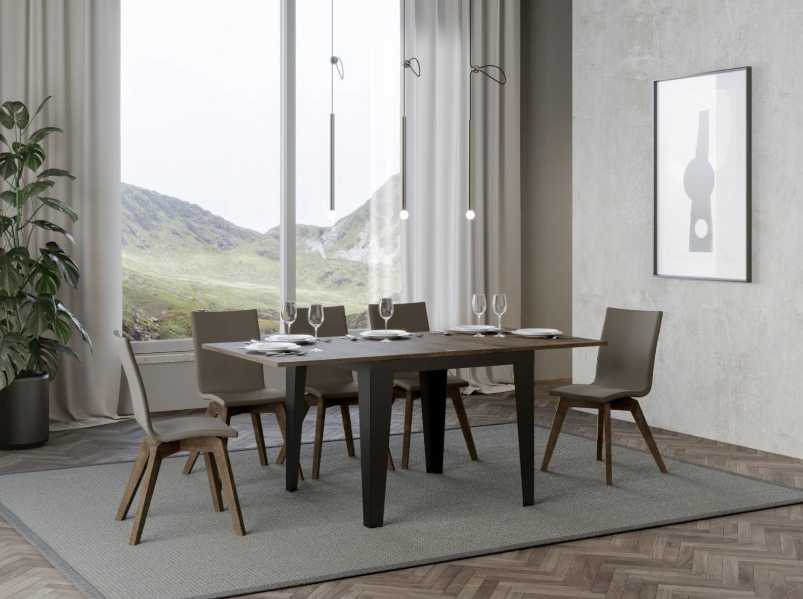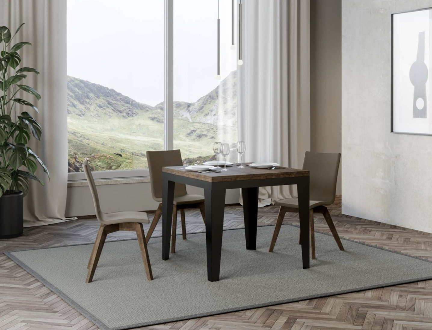 Apportez une solution pratique et élégante à votre espace avec la table pliante Librio, conçue pour s'adapter à tout style d'ameublement. Avec son design linéaire, simple et essentiel, cette table est parfaite pour toute situation ou besoin d'espace, que ce soit pour un usage quotidien ou pour des occasions conviviales où plus d'invités sont attendus. Caractéristiques et Dimensions Dimensions (fermée): L 90 x P 90 x H 80 cm Dimensions (ouverte): L 180 x P 90 x H 78 cm Nombre de places: 4 à 6 Poids: 44 kg (livré en 3 colis) Matériaux et Construction Plateau: Bois mélaminé de haute qualité Pieds: Acier peint anthracite Structure: Acier mat anthracite Mécanisme: Le mécanisme d'ouverture rabattable permet de doubler la surface du plateau en quelques étapes simples, offrant une grande flexibilité d'utilisation Coloris Disponibles Gris ciment Chêne naturel Marron noyer Blanc Qualité et Fabrication Garantie: 5 ans Fabrication: Italienne Assemblage: À monter Avec la table pliante Librio, combinez style et praticité dans votre espace de vie. Sa capacité à doubler sa surface en fait un choix idéal pour les petits espaces ou pour les moments où vous avez besoin d'accueillir plus d'invités. Option(s) sélectionnée(s) : - Couleur : Marron