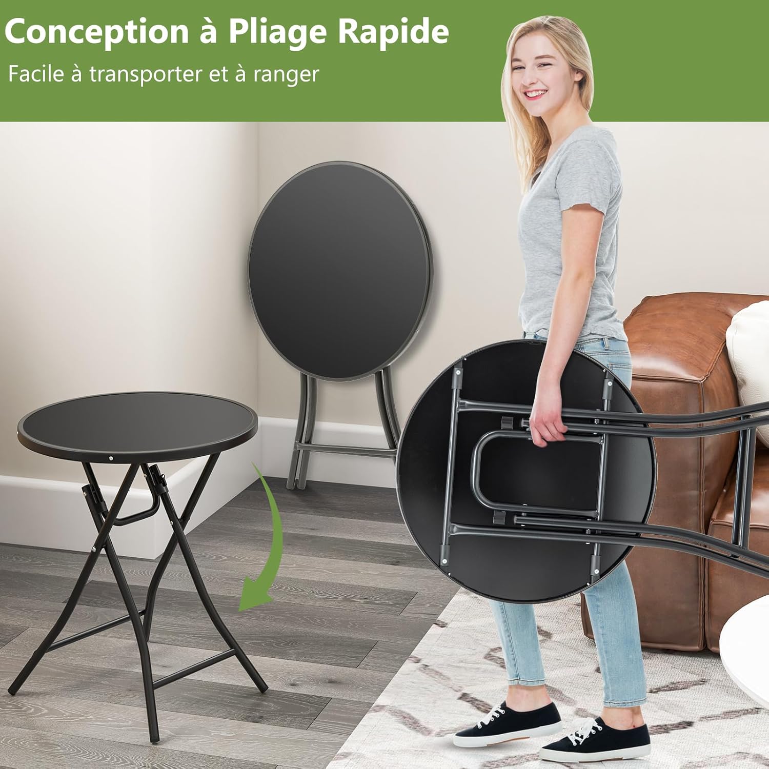 | Libellé | Table pliante jardin ronde 59 cm, table de bistrot extérieur avec plateau en verre trempé table d'appoint pliable, pour patio,balcon |
