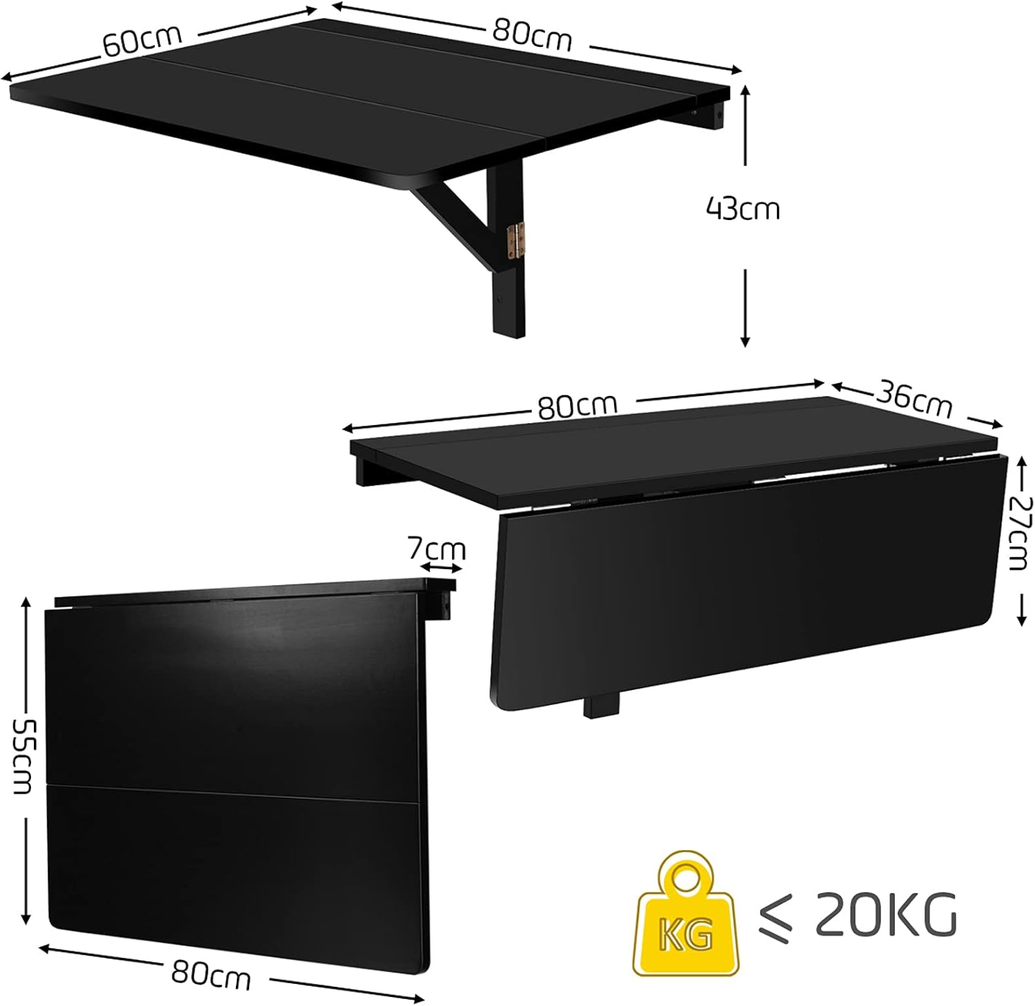 | Libellé | Table pliante murale, plateau rabattable, bureau peu encombrant, table à manger en bois, noir |