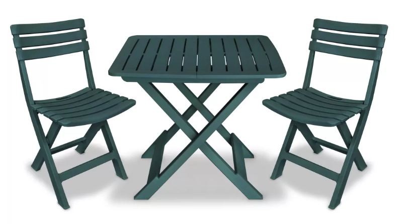 | Libellé | Table rectangulaire et 2 chaises de jardin plastique vert Camille |