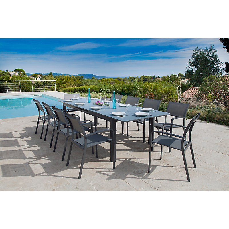 Table rectangulaire extensible Milos 8/10 personnes en aluminium anthracite JardiLINE