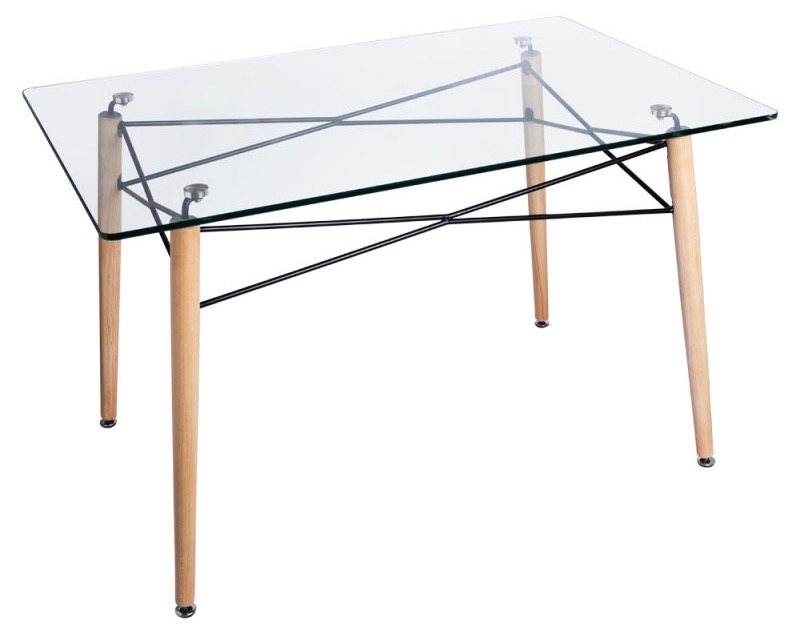 | Libellé | Table rectangulaire scandinave verre trempé et pieds bois clair Bristol 120cm |