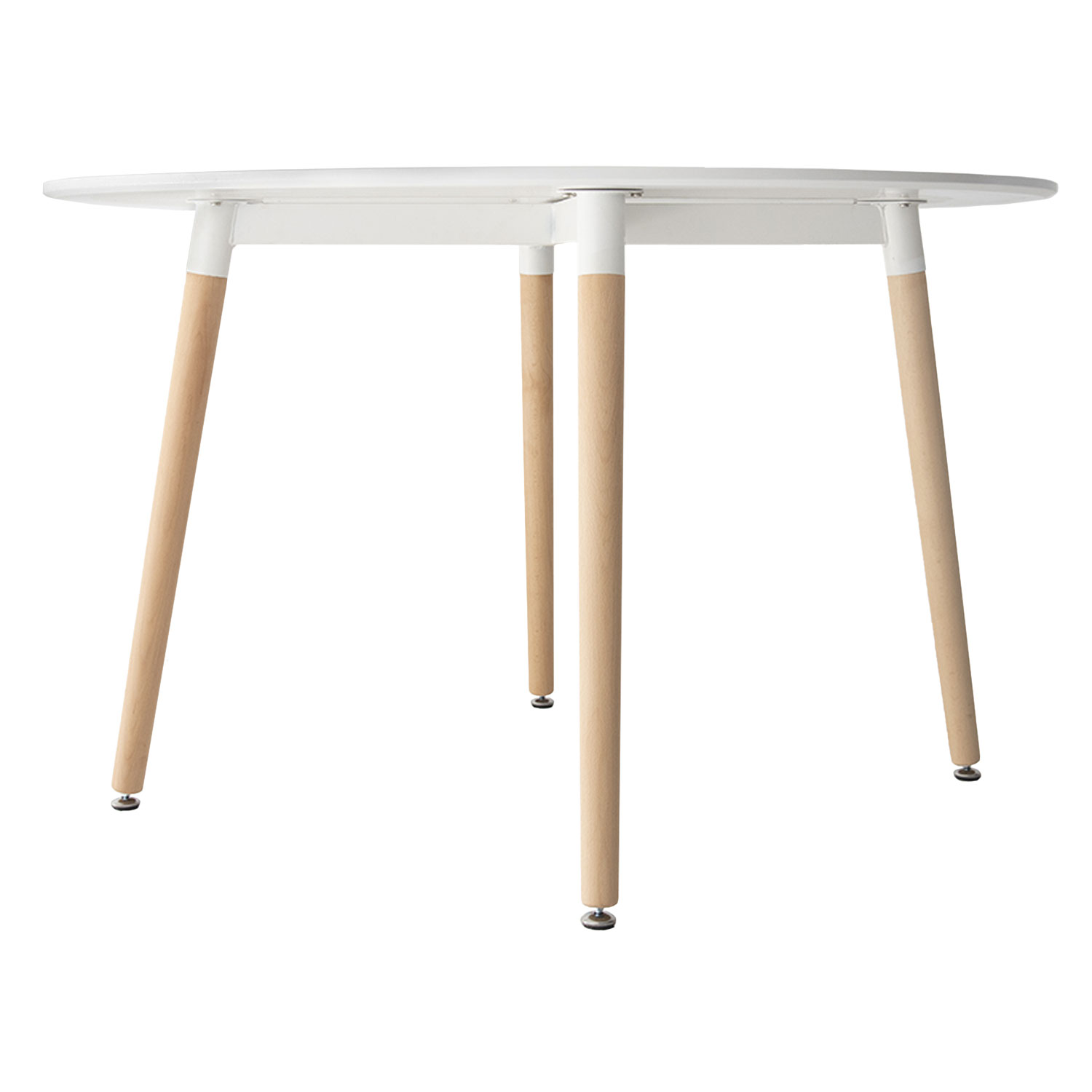 Créez un espace convivial et chaleureux avec cette table ronde scandinave MARTHA. Son plateau de 120cm de diamètre est idéal pour les petits espaces et vous permettra d'accueillir jusqu'à 4 personnes. Ses pieds obliques en bois clair vous rappelleront le style nordique des années 50. Le design épuré et les coloris sobres de cette table blanche se marieront parfaitement à tous les styles de déco. Pour un total look scandinave, n'hésitez pas à associer cette table aux chaises NORA.
