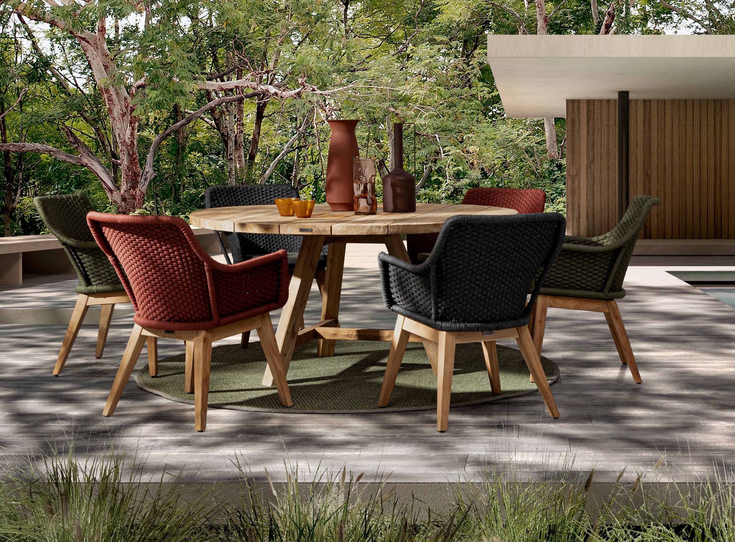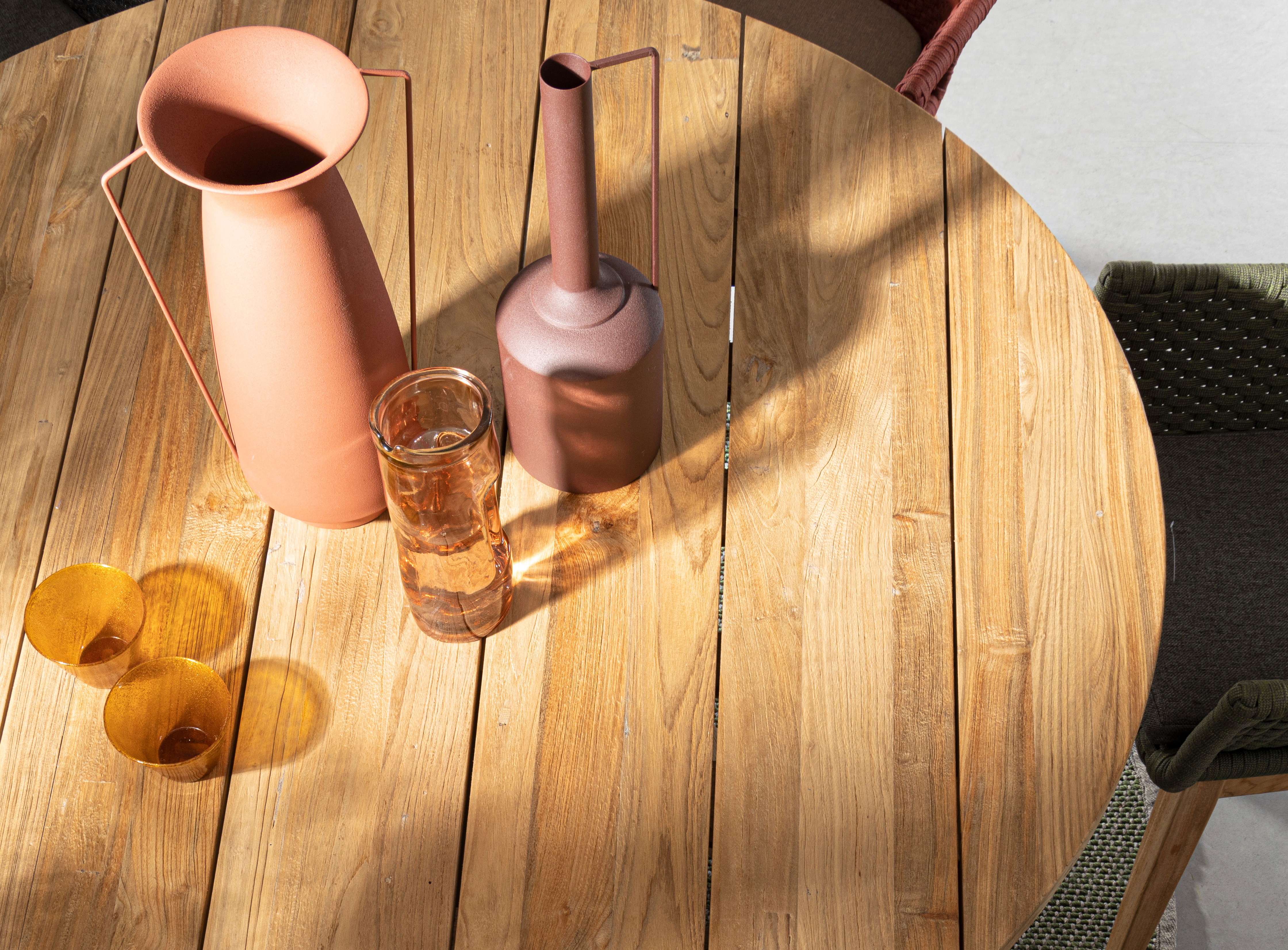 Table ronde de jardin en bois de teck recyclé 8 à 10 places Kanton 150 cm