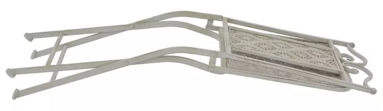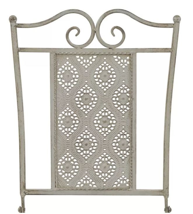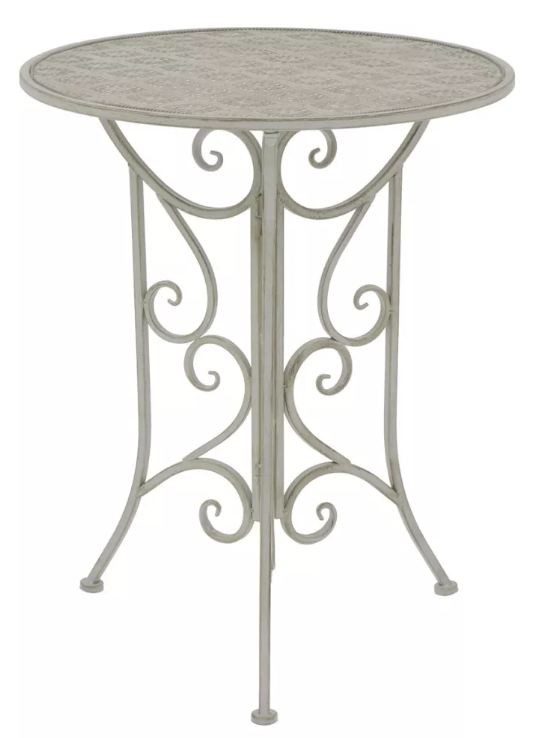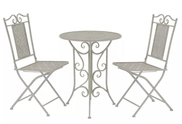 Cet ensemble de table et de chaises de jardin apportera une touche classique à votre espace de vie extérieur. La table et les chaises sont conçues avec du métal avec des détails peints à la main. Ce modèle existe également en d'autres couleurs. Il existe aussi d'autres ensembles de table et de chaises que vous pourrez découvrir sur notre site. Et vous pouvez aussi acheter les éléments séparément. Caractéristiques de la table : Dimensions : D 60 x H 76 cm Couleur : Gris Matériau : Métal Caractéristiques des chaises : Dimensions : L 38.5 x H 92.5 x P 52 cm Couleur : Gris Matériau : Métal