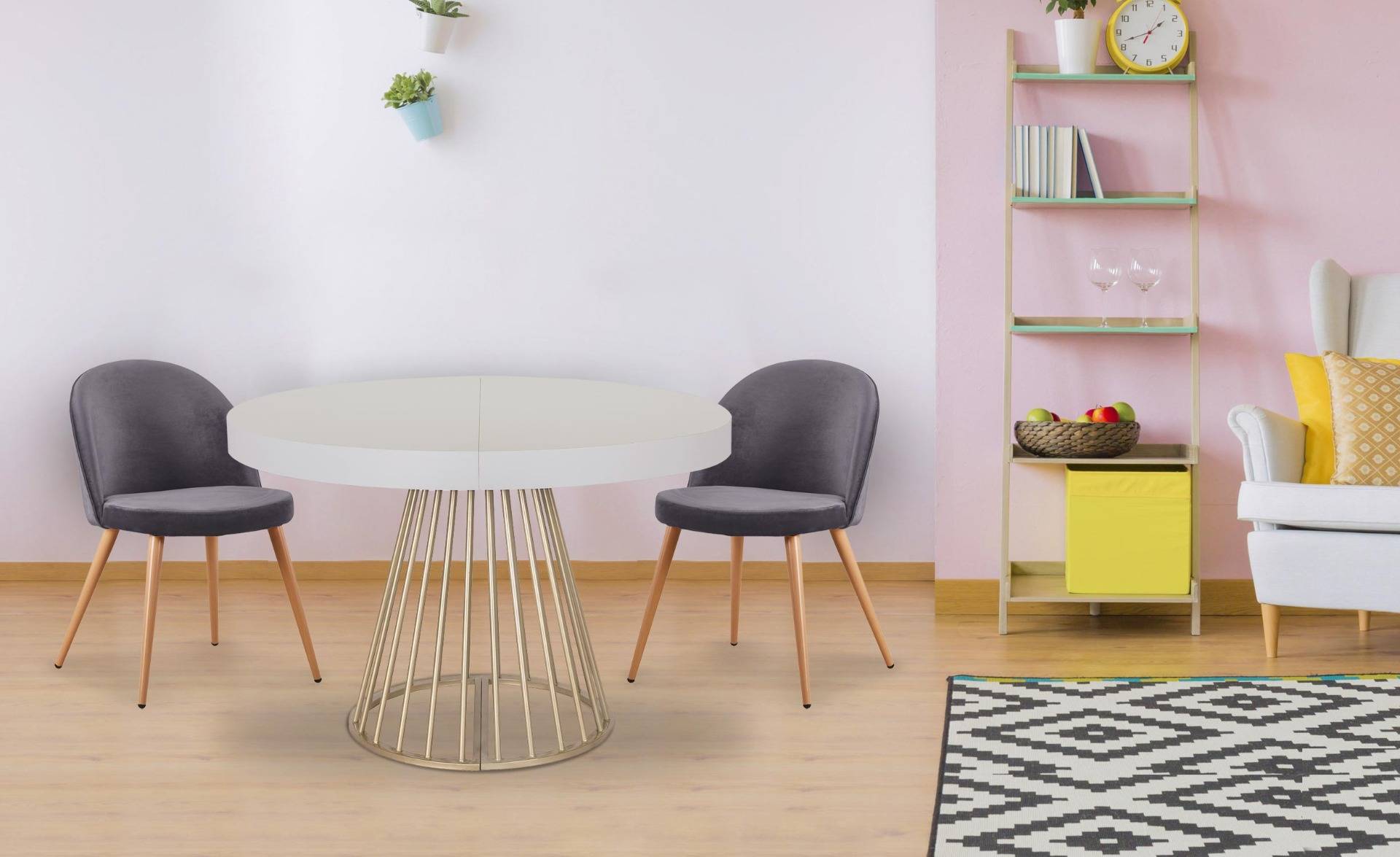 | Libellé | Table ronde extensible blanche et pieds doré Wenny 160-210-260cm |