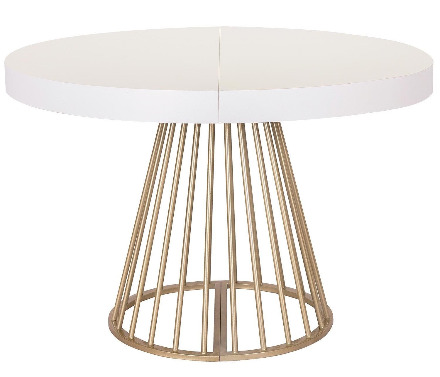 Table ronde extensible blanche et pieds doré Wenny 160-210-260cm