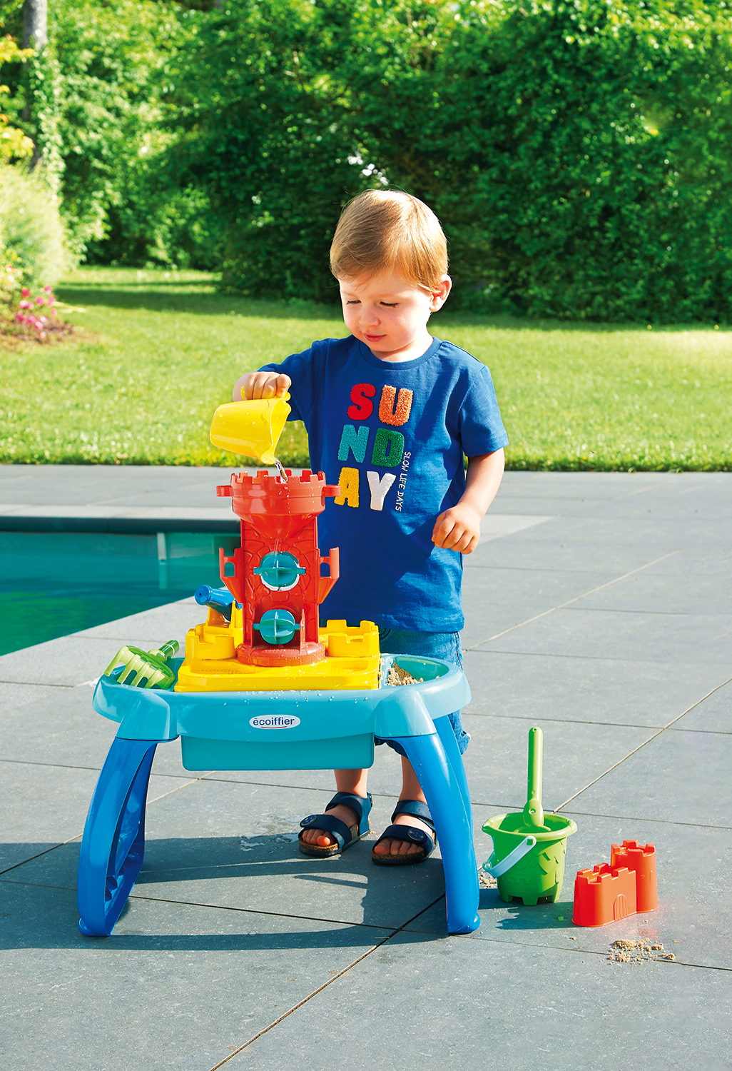Une table à 3 compartiments pour expérimenter les jeux de sable et d’eau. Contient un tamis, un moulin à sable, une pelle et un râteau, un seau, un arrosoir, une bombarde décorative et 1 moule à sable château. Conseillé dès 18 mois. Origine France Garantie.