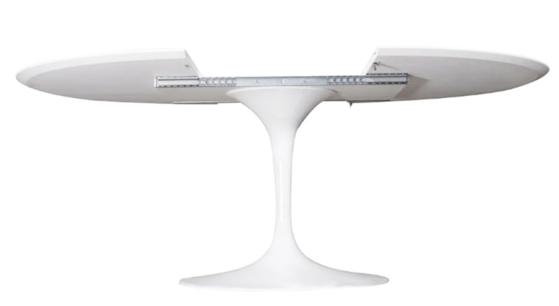 Libellé Table tulipe ronde extensible plateau stratifié - Collection-Plateau Blanc mat-Largeur 137/187 cm-Piètement Blanc brillant
