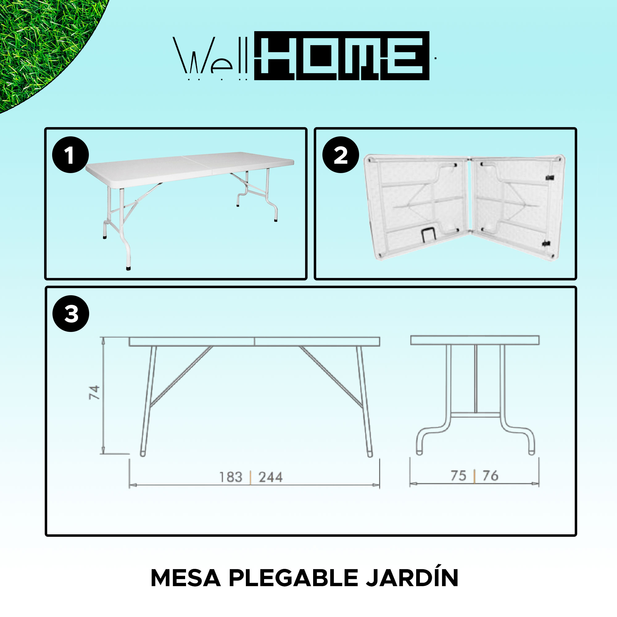 Table valise pliante avec structure métallique 180cm x 75cm x 74cm
