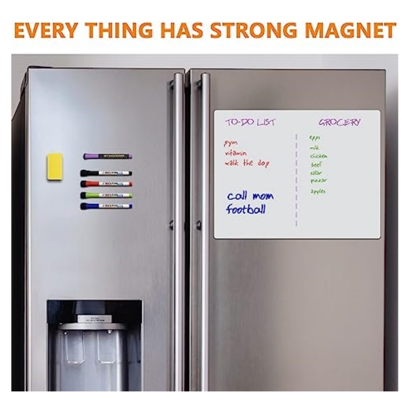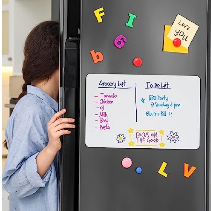 Le tableau d'écriture magnétique se fixe sur les surfaces en fer telles que les réfrigérateurs ou les armoires. Parfait pour la liste de choses à faire, la liste de courses ou comme planche à dessin. Facile à nettoyer sans laisser de taches. N'oubliez pas d'utiliser des stylos pour tableau blanc !