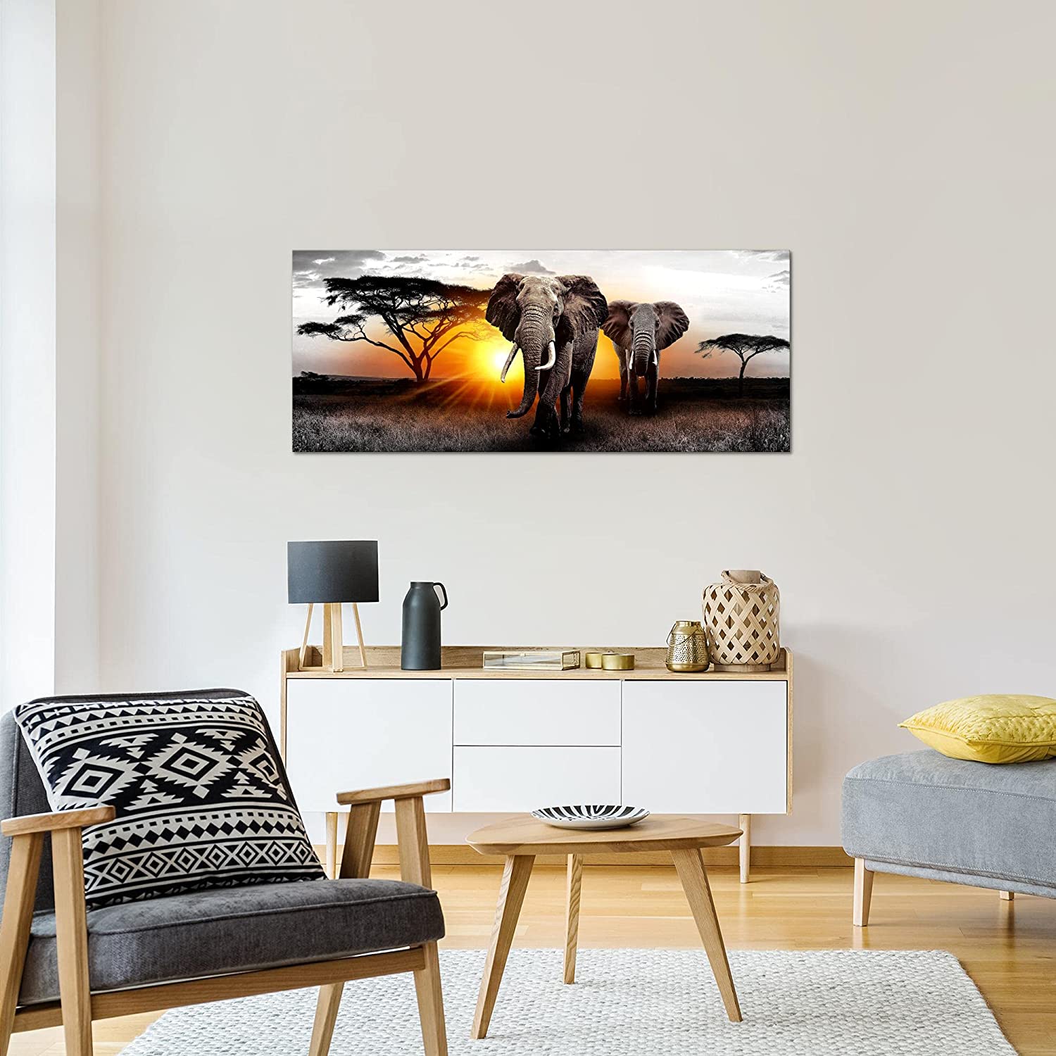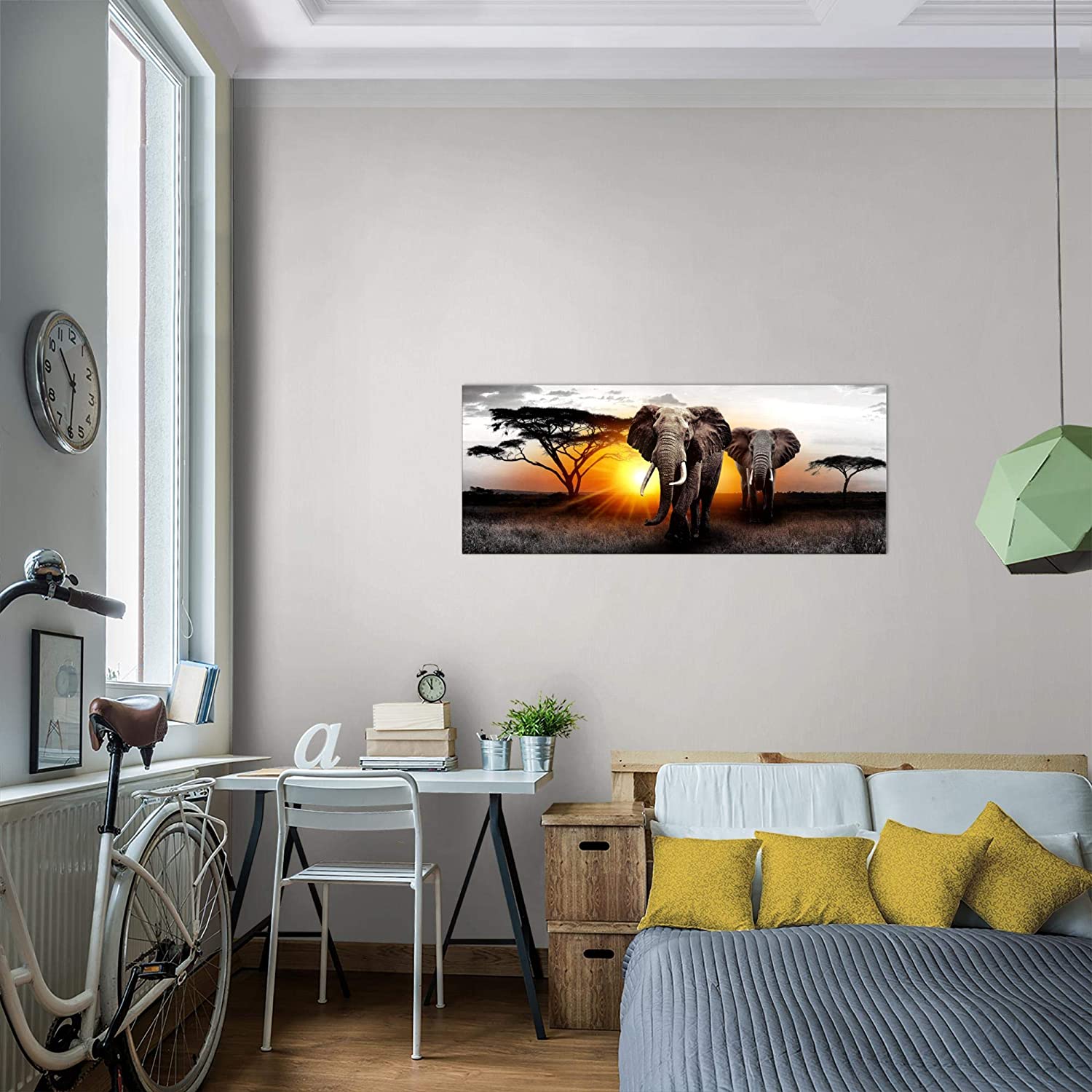 Tableau Décoration Murale Afrique L'Éléphant 100 x 40 CM |1 panneau à accrocher| ressemble à Impression