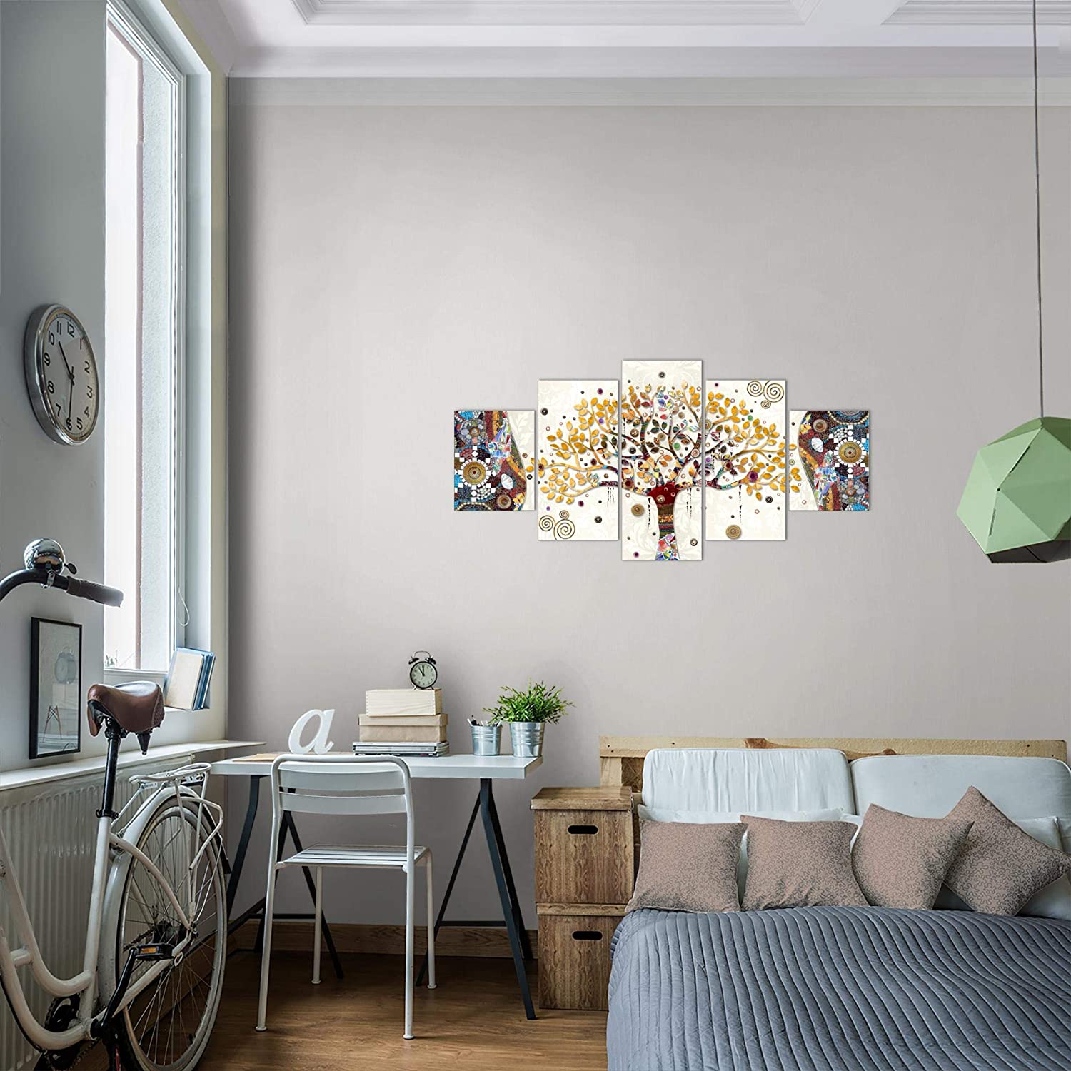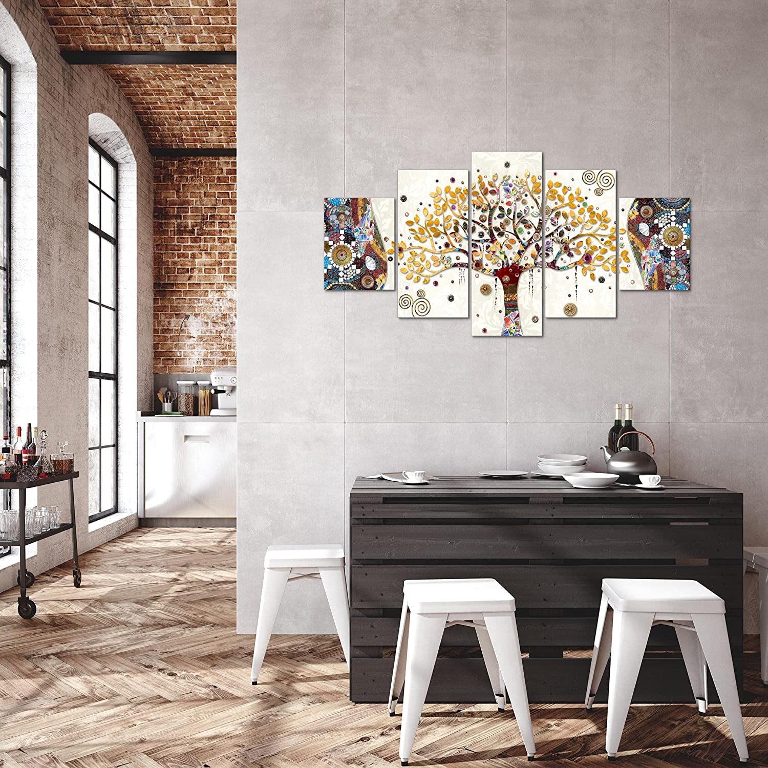 Tableau Décoration Murale Gustav Klimt - Arbre de vie 150x75 CM |5 panneaux| ressemble à Impression sur T