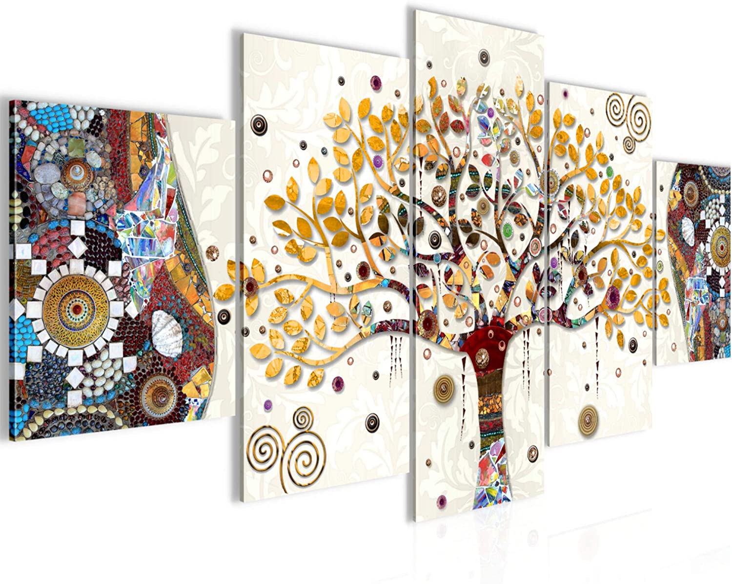 Libellé Tableau Décoration Murale Gustav Klimt - Arbre de vie 150x75 CM |5 panneaux| ressemble à Impression sur Toile 004653a