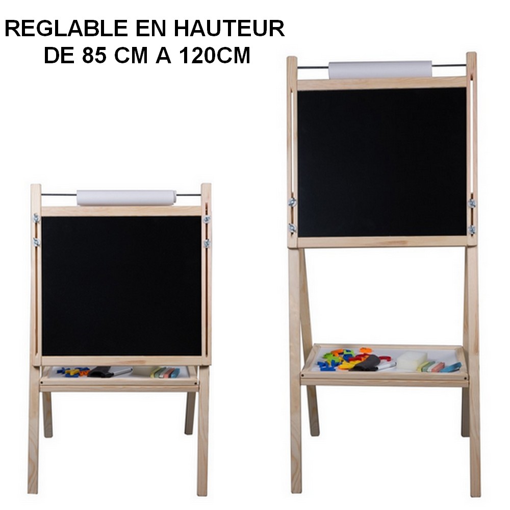 Tableau en bois reglable en hauteur double face enfant craie feutre