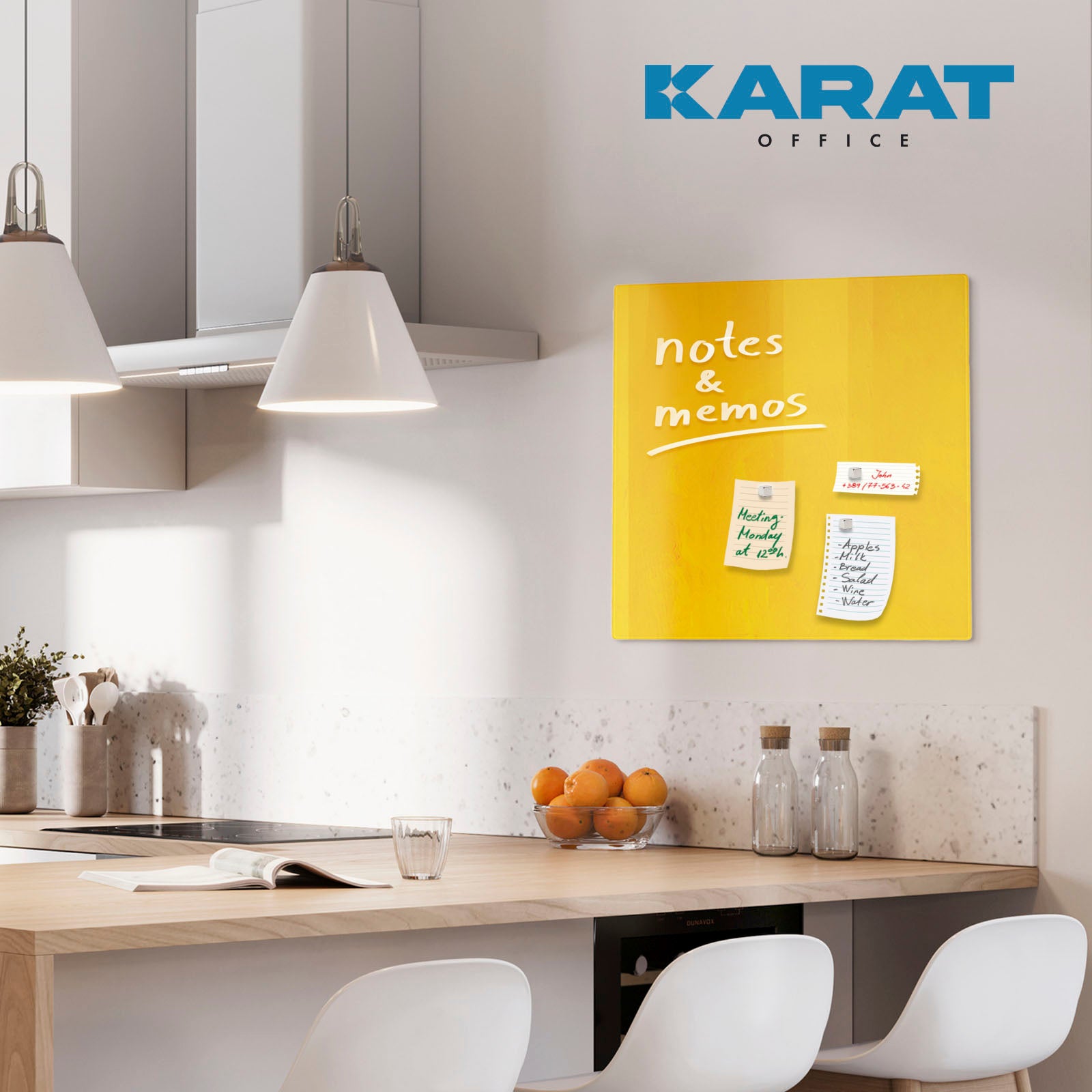 Tableau mémo design en verre, Print, Jaune, 48 x 48 cm