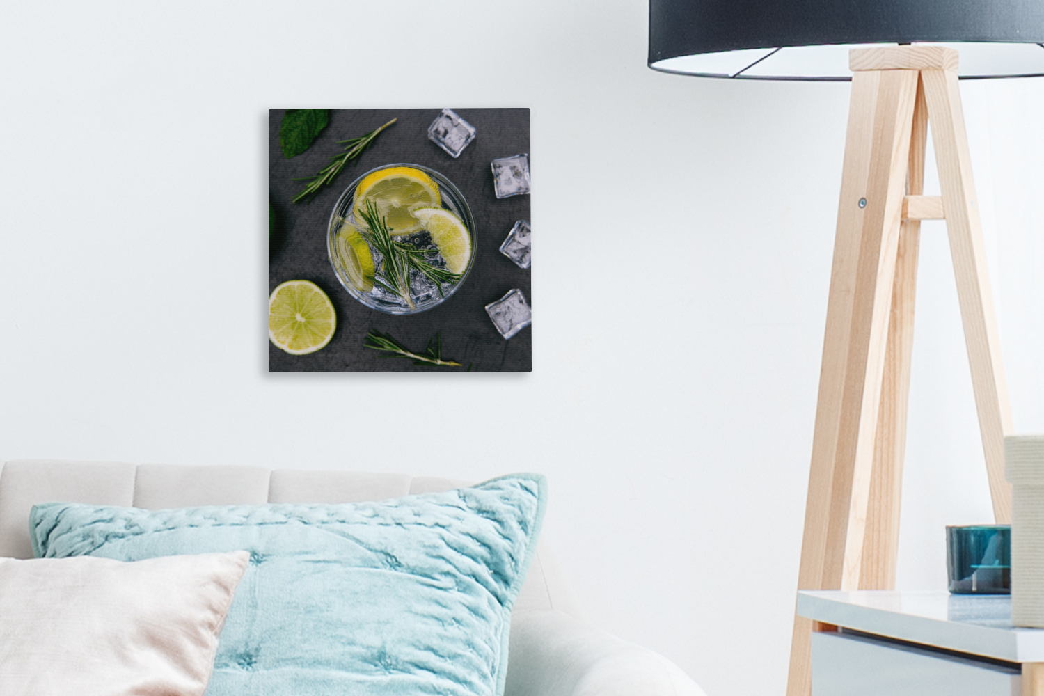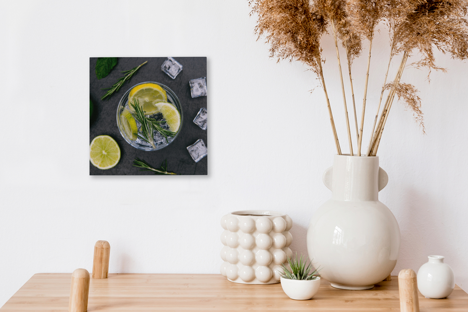 Libellé Tableau sur toile Boisson - Fruit - Tasse - Citron Decoration murale 20x20 cm
