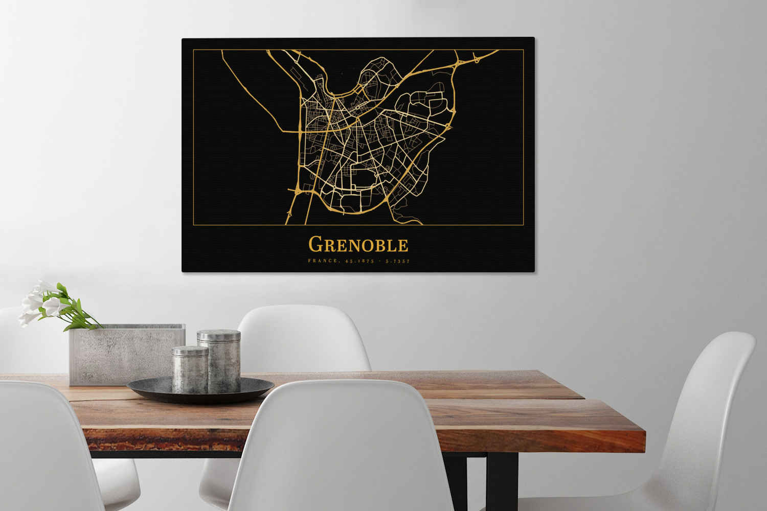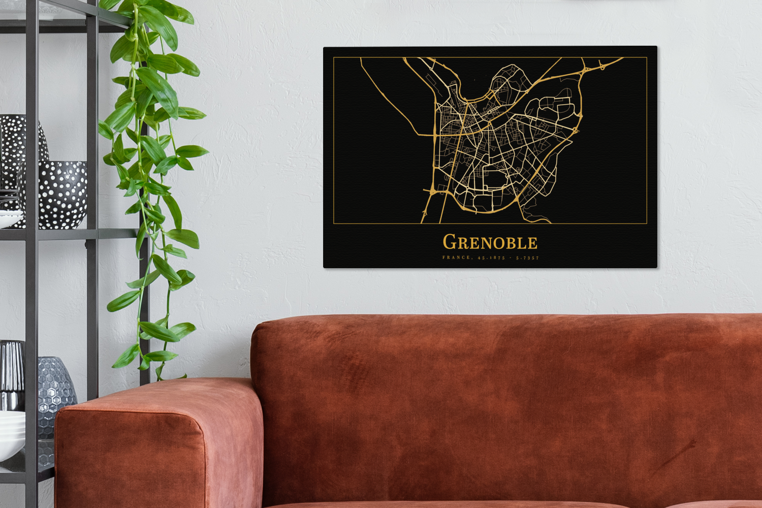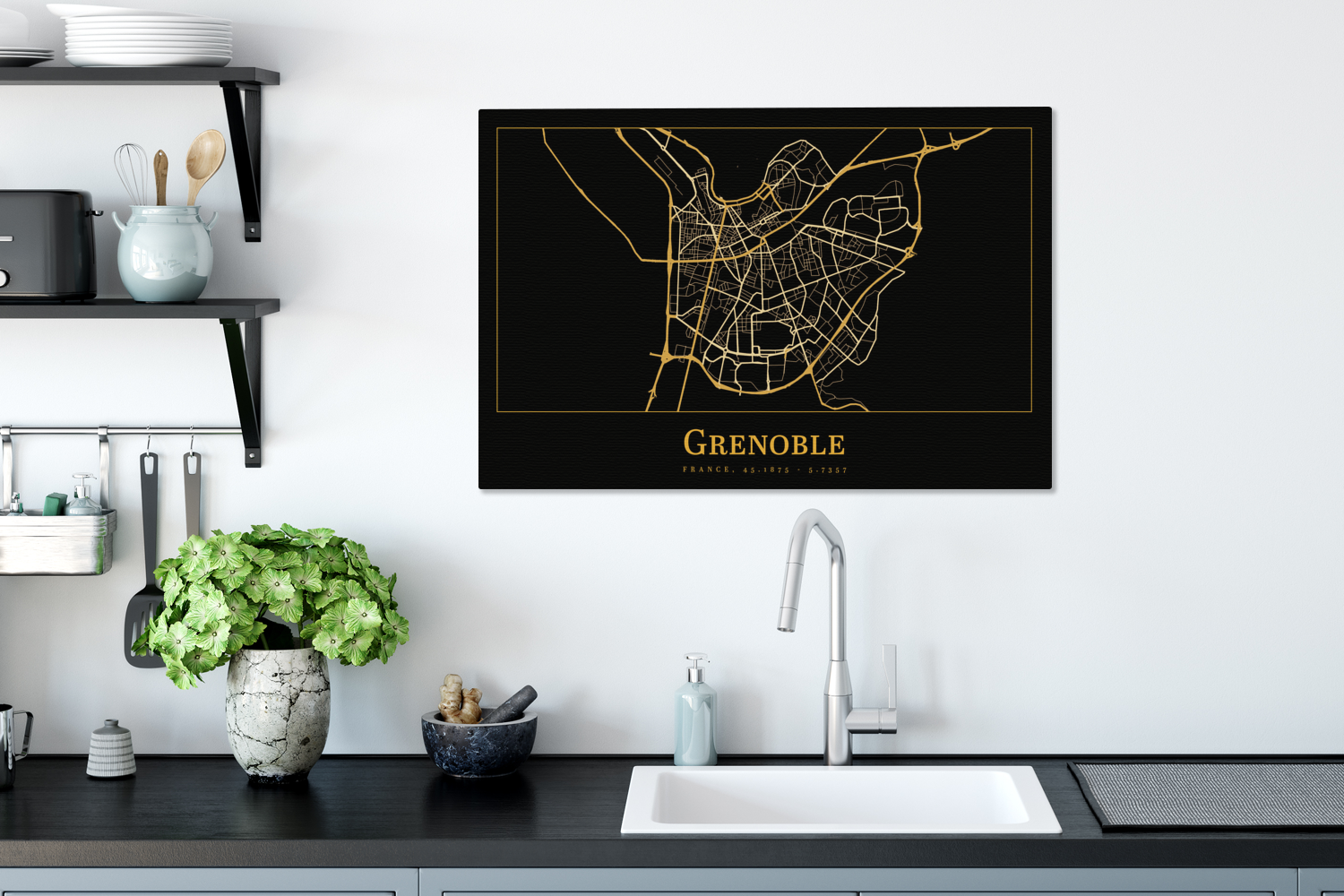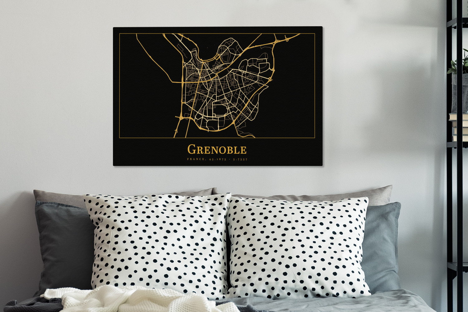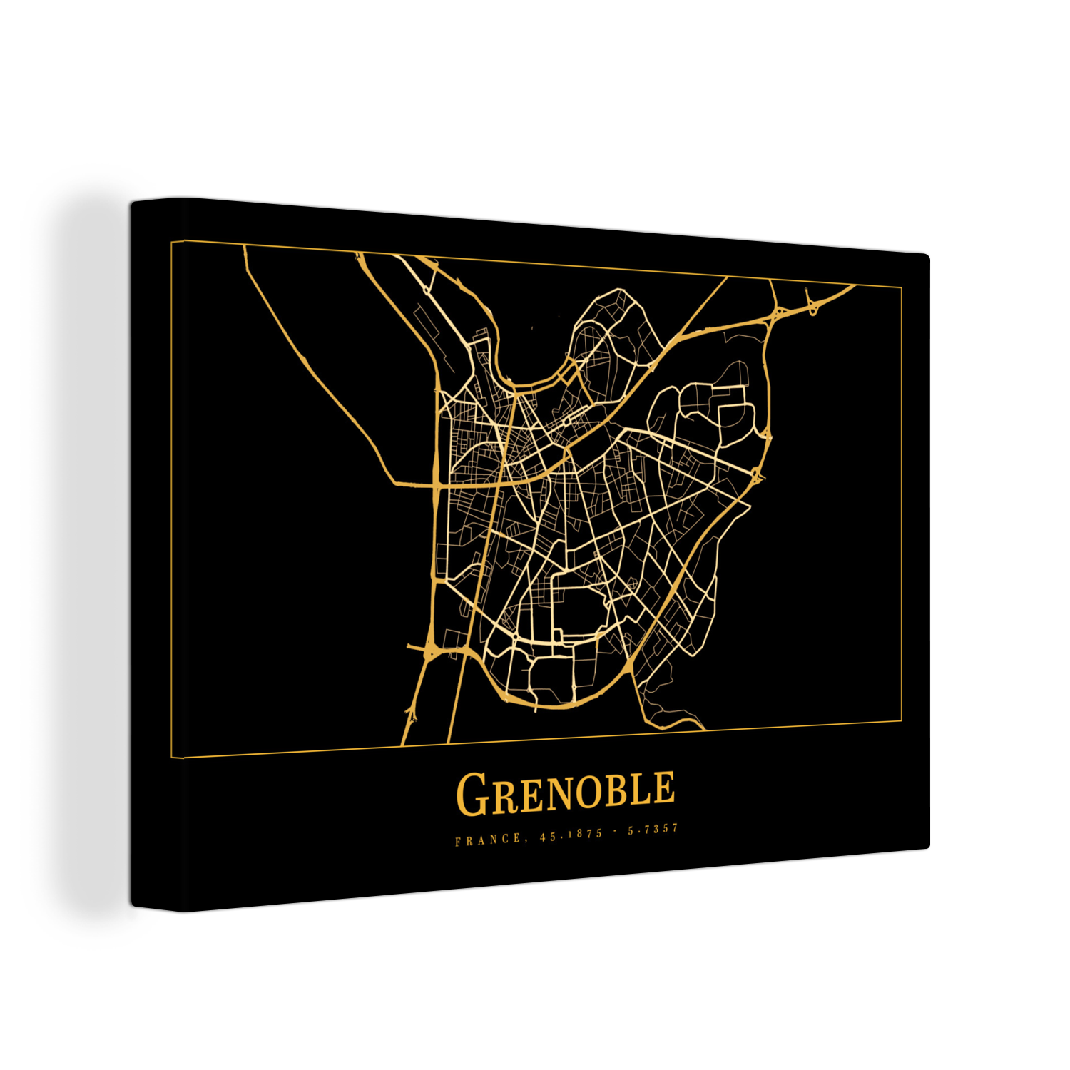 | Libellé | Tableau sur toile Carte - Grenoble - Or - Noir Decoration murale 90x60 cm |