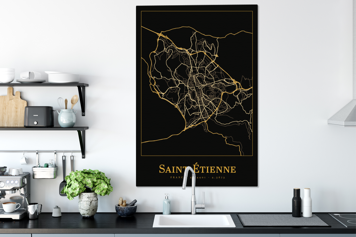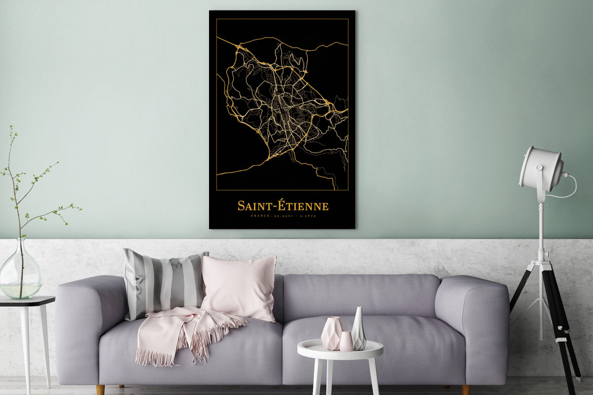 | Libellé | Tableau sur toile Carte - Saint-Etienne - Or - Noir Decoration murale 90x140 cm |