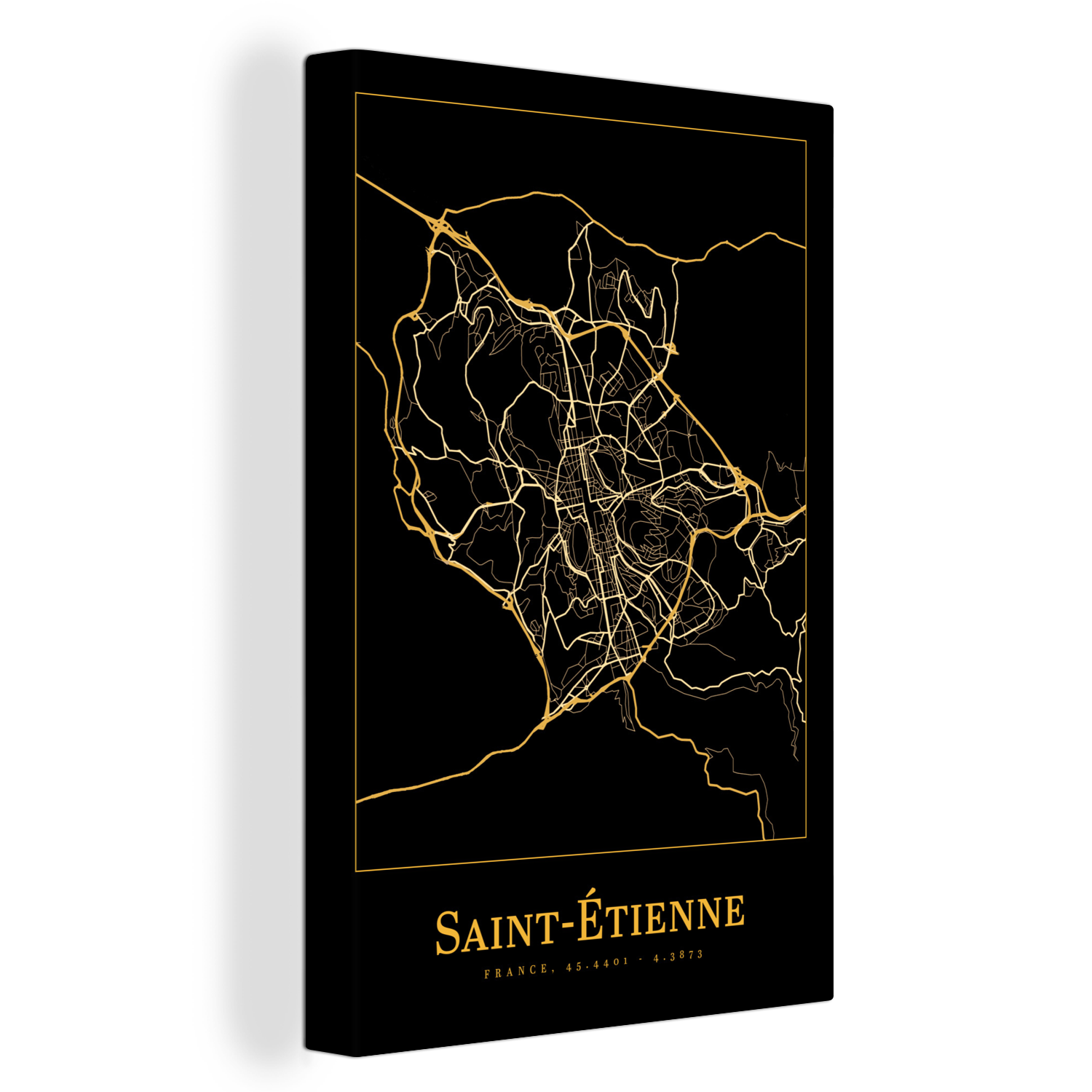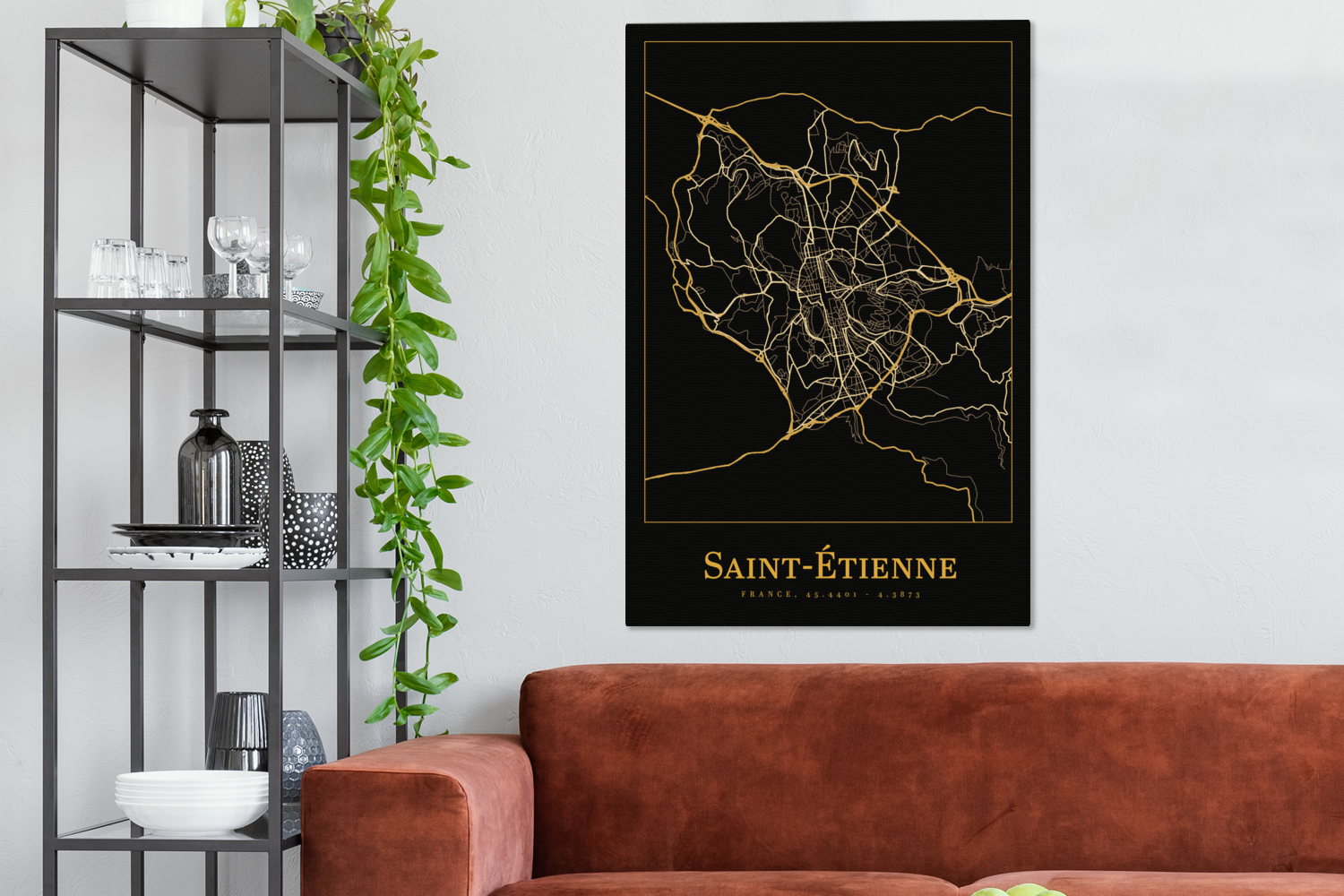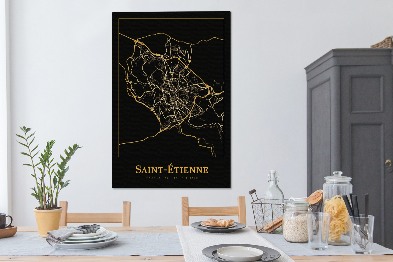 Tableau sur toile Carte - Saint-Etienne - Or - Noir Decoration murale 90x140 cm