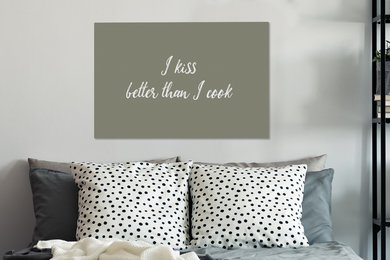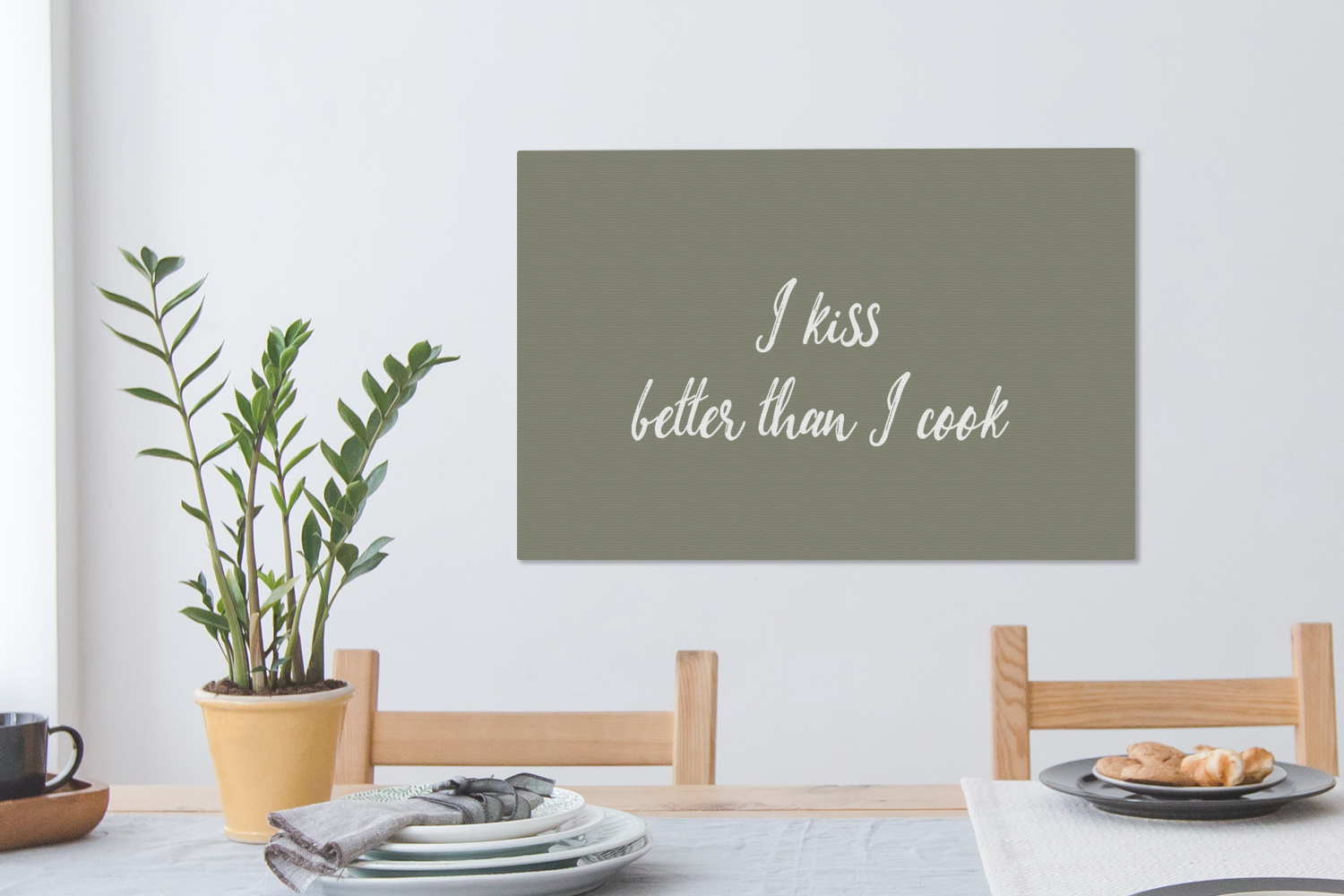 Libellé Tableau sur toile Citation de Proverbes - J'embrasse mieux que je ne cuisine - Citations Decoration murale 60x40 cm