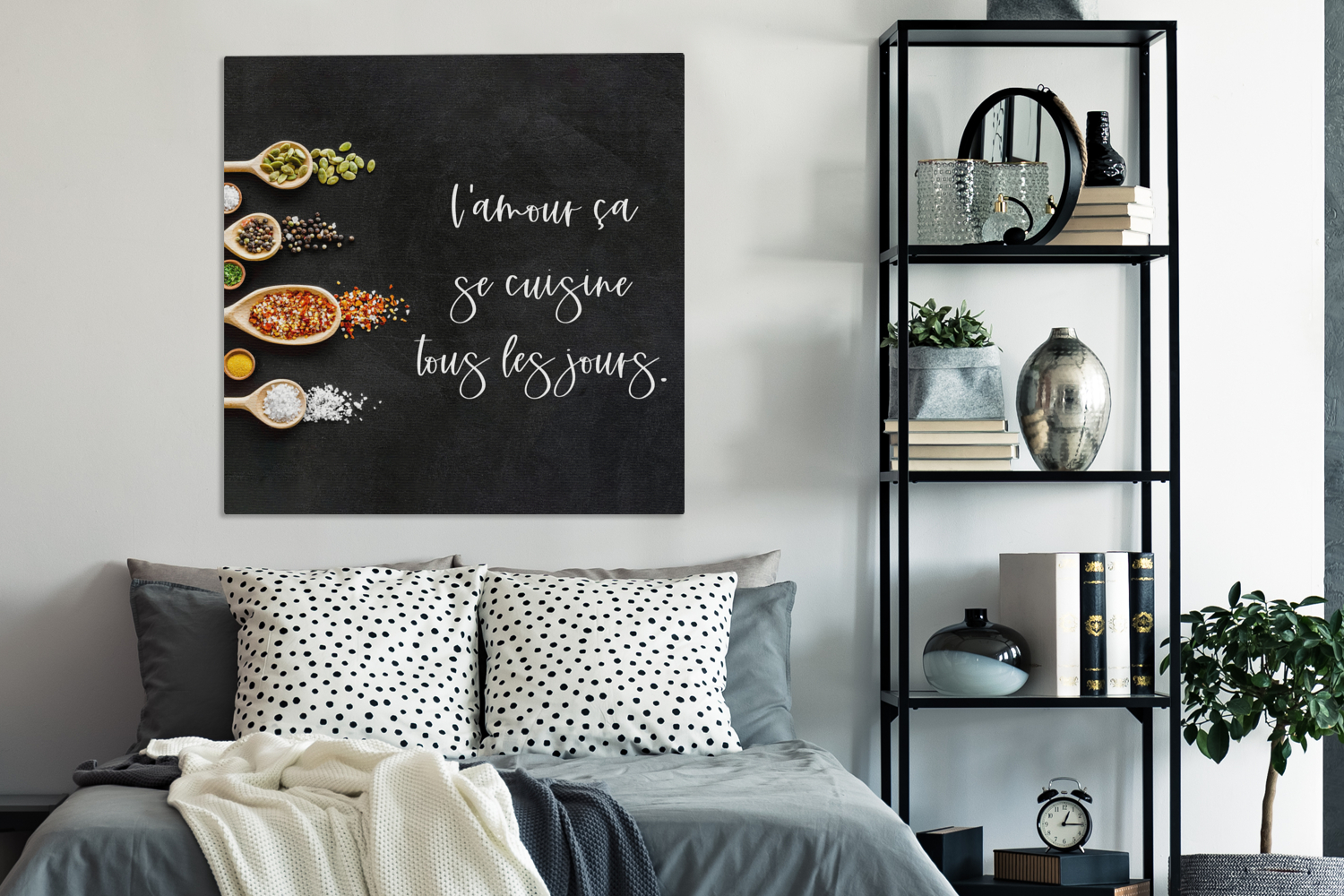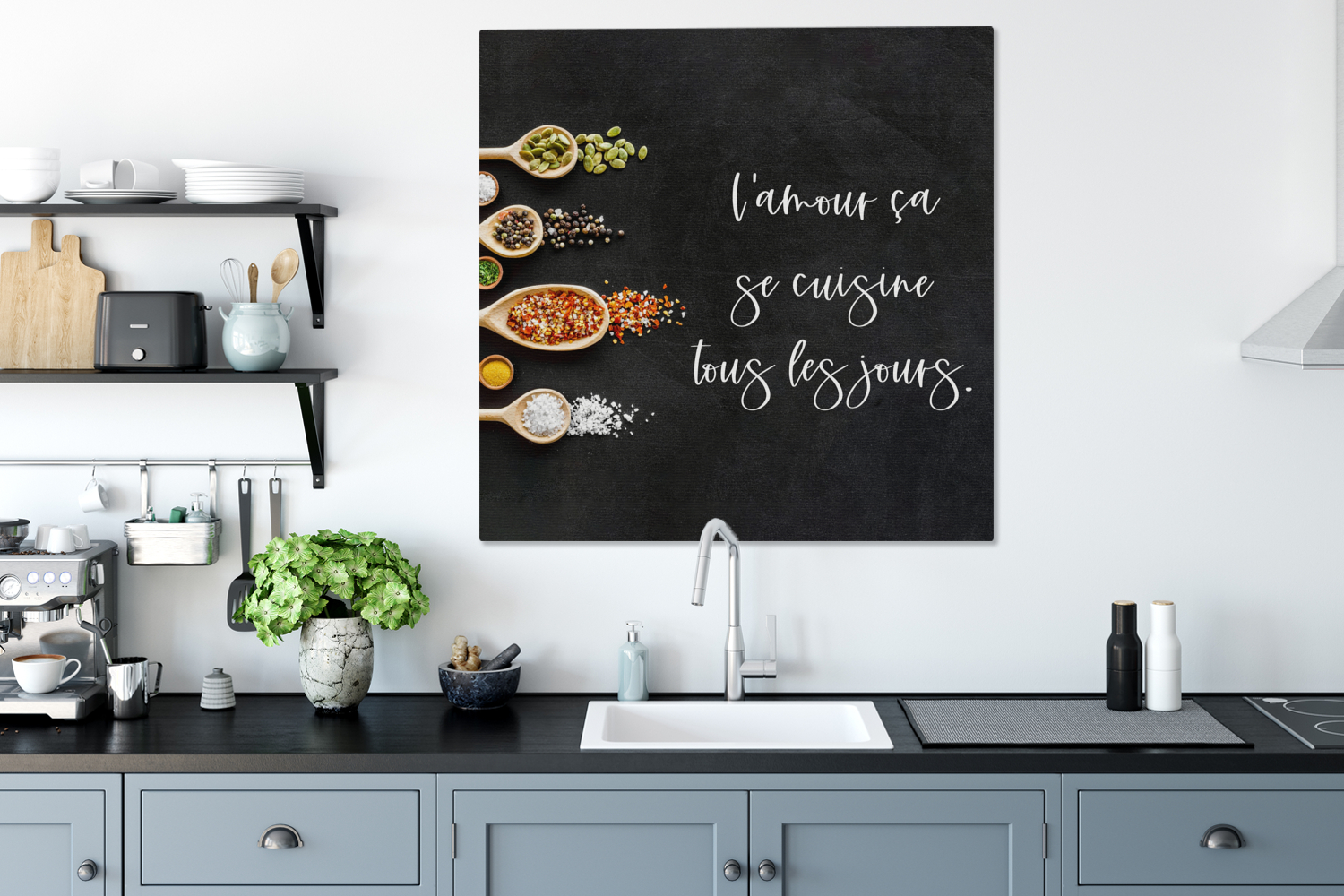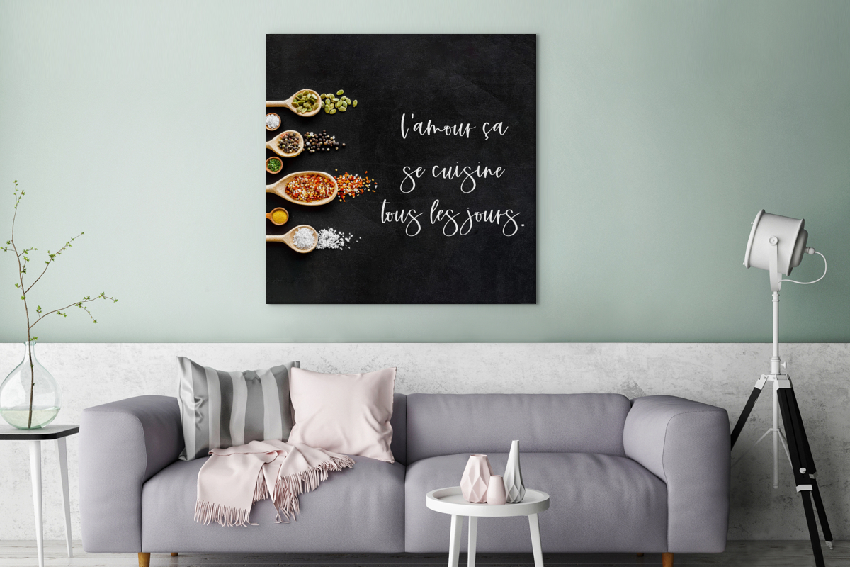 Libellé Tableau sur toile Citation de Proverbes - L'amour ça se cuisine tous les jours - Citations de cuisine Decoration murale 90x90 cm