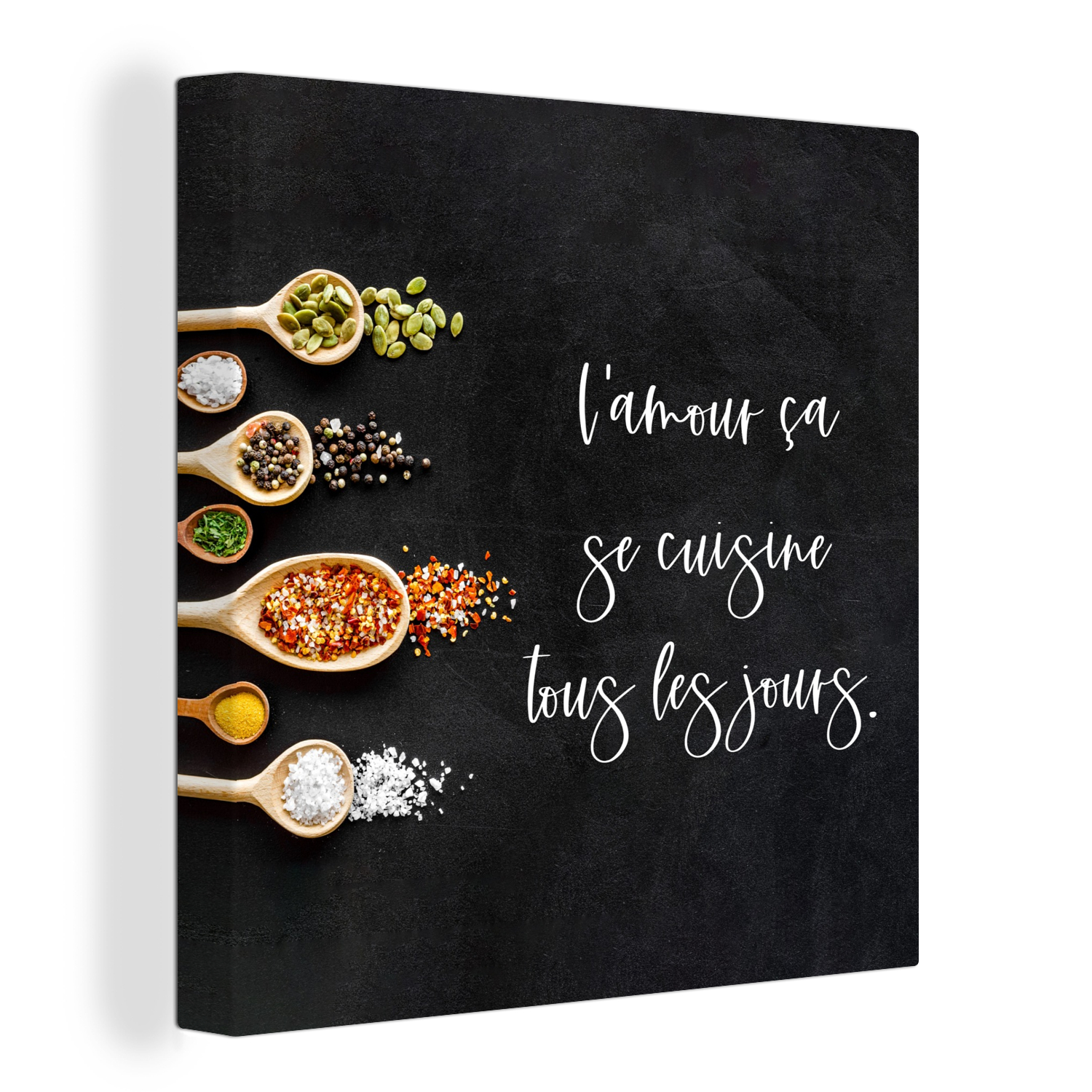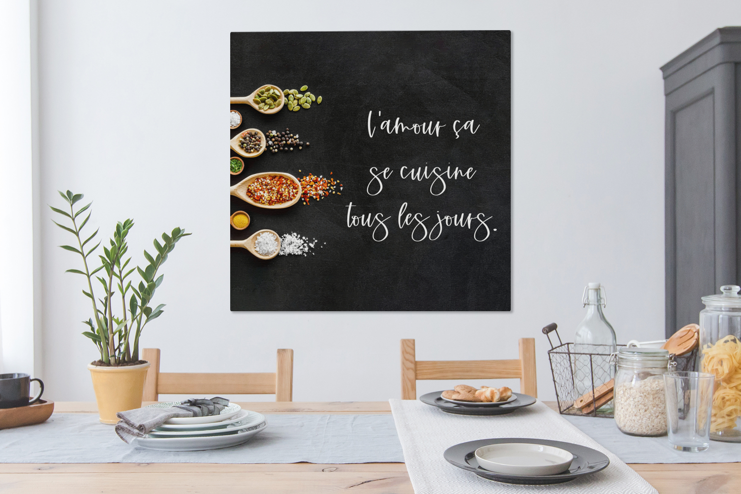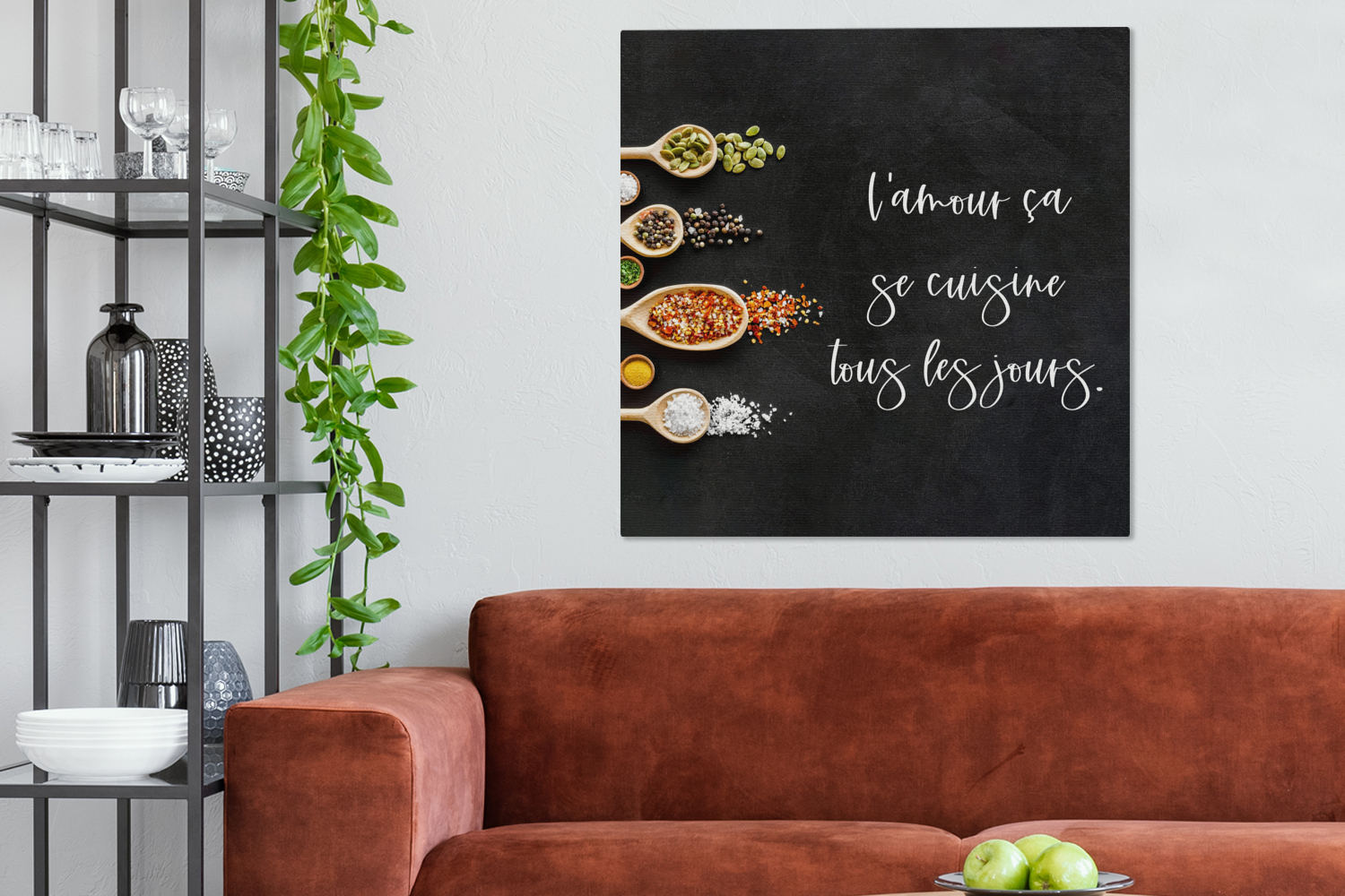 Libellé Tableau sur toile Citation de Proverbes - L'amour ça se cuisine tous les jours - Citations de cuisine Decoration murale 90x90 cm