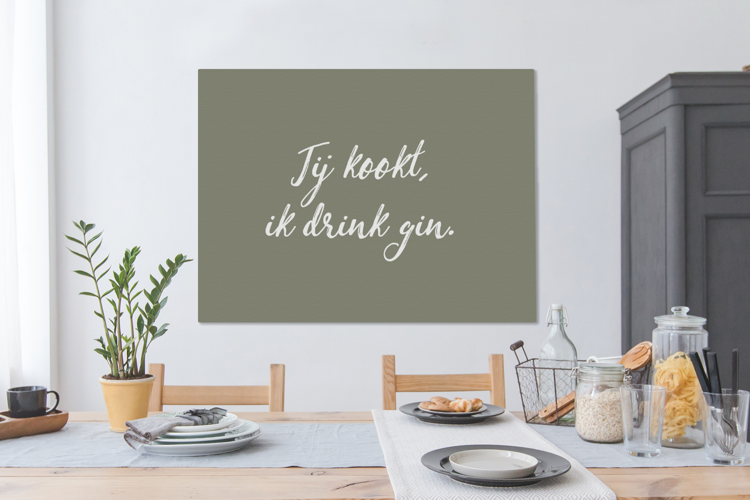 Tableau sur toile Citation de Proverbes - Tu cuisines, je bois du gin - Citations Decoration murale 120x9