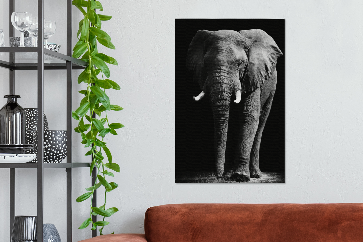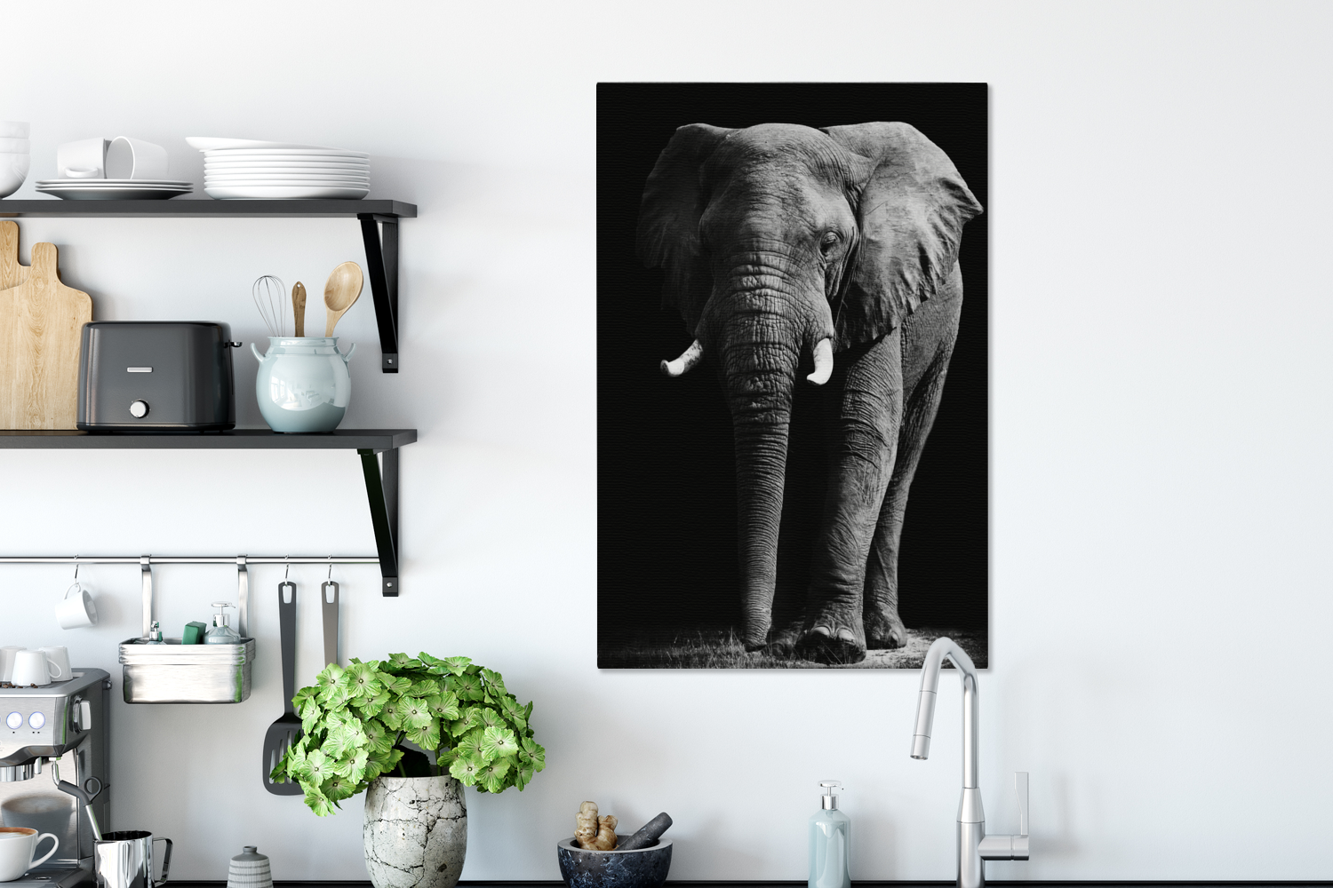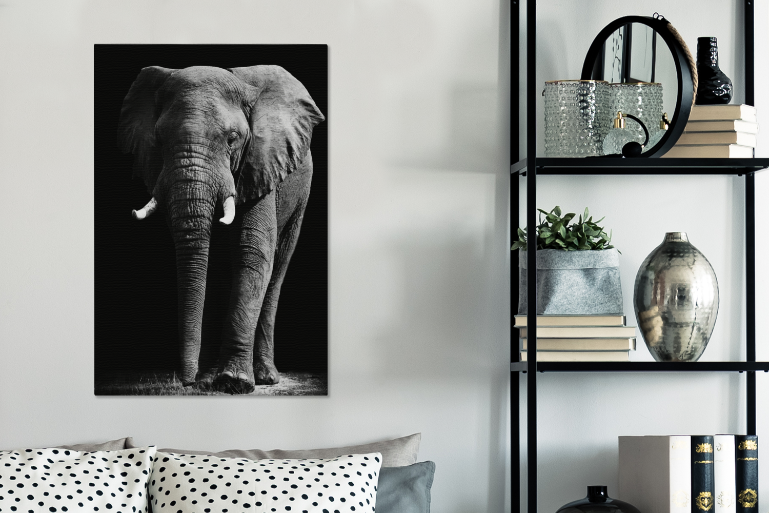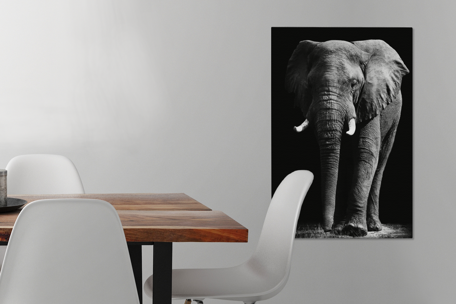 Tableau sur toile Éléphant - Noir - Blanc - Animaux sauvages Decoration murale 60x90 cm