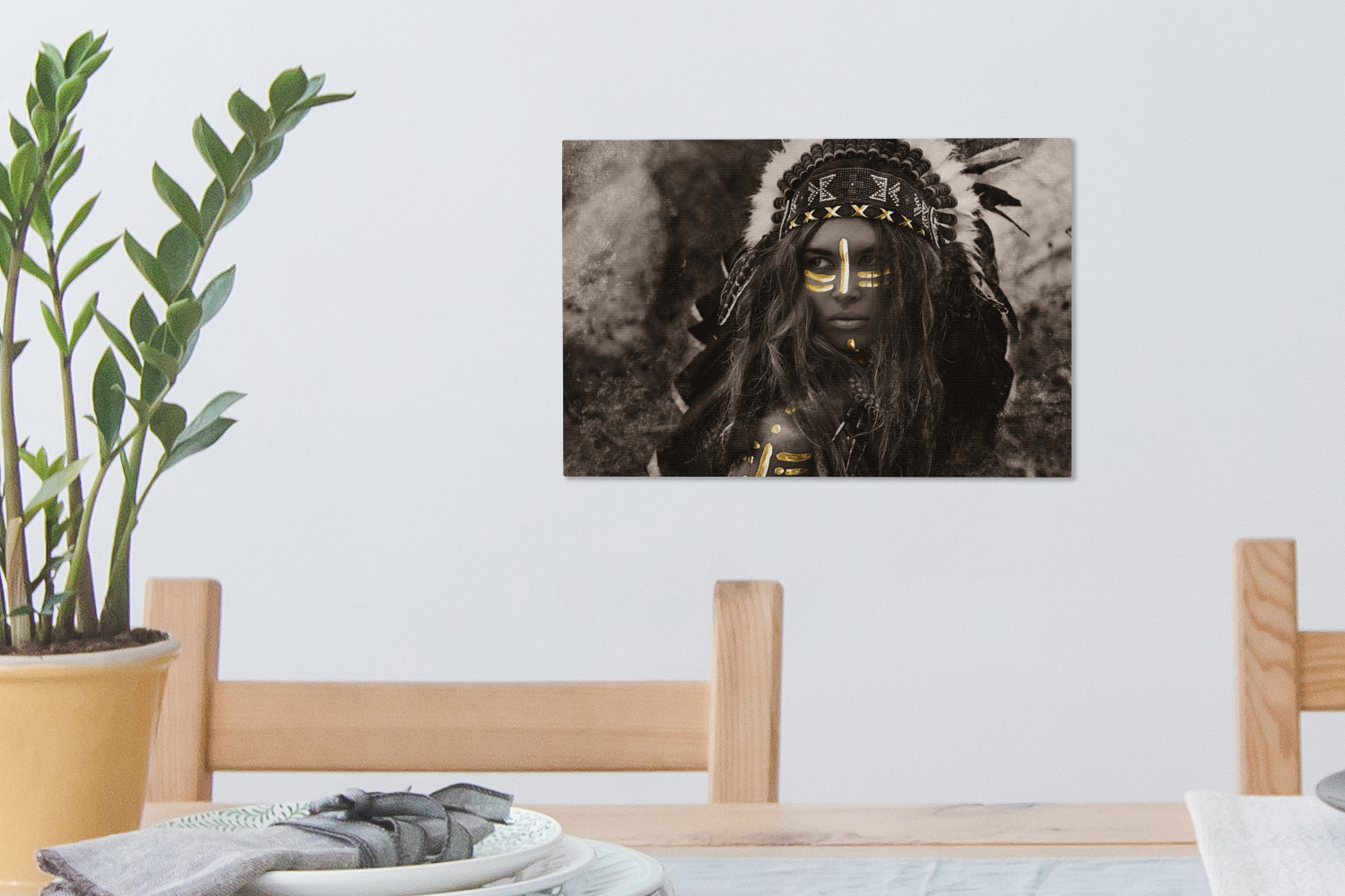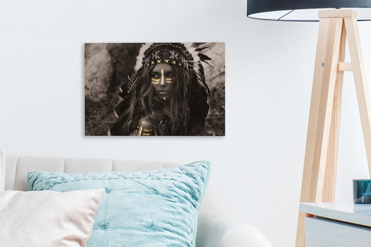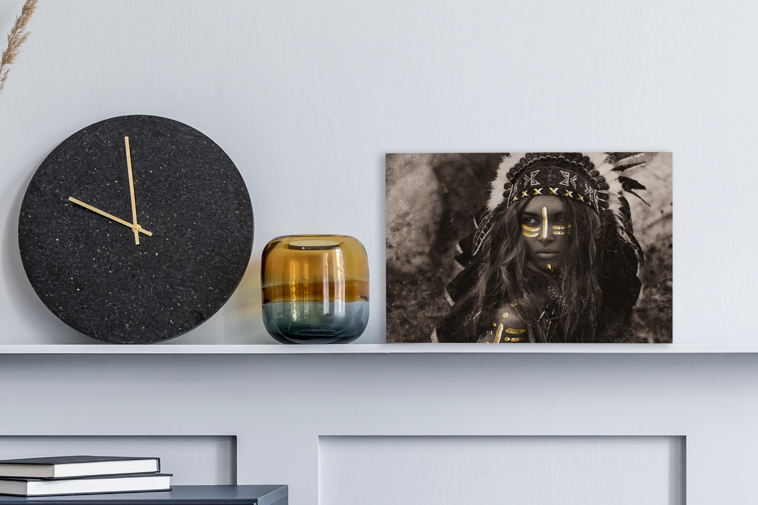 Tableau sur toile Femme - Robe indienne - Or Decoration murale 30x20 cm