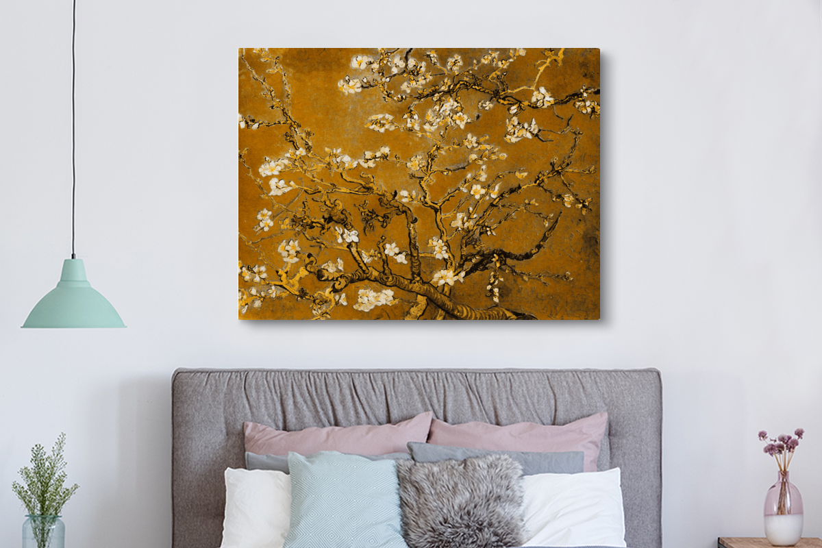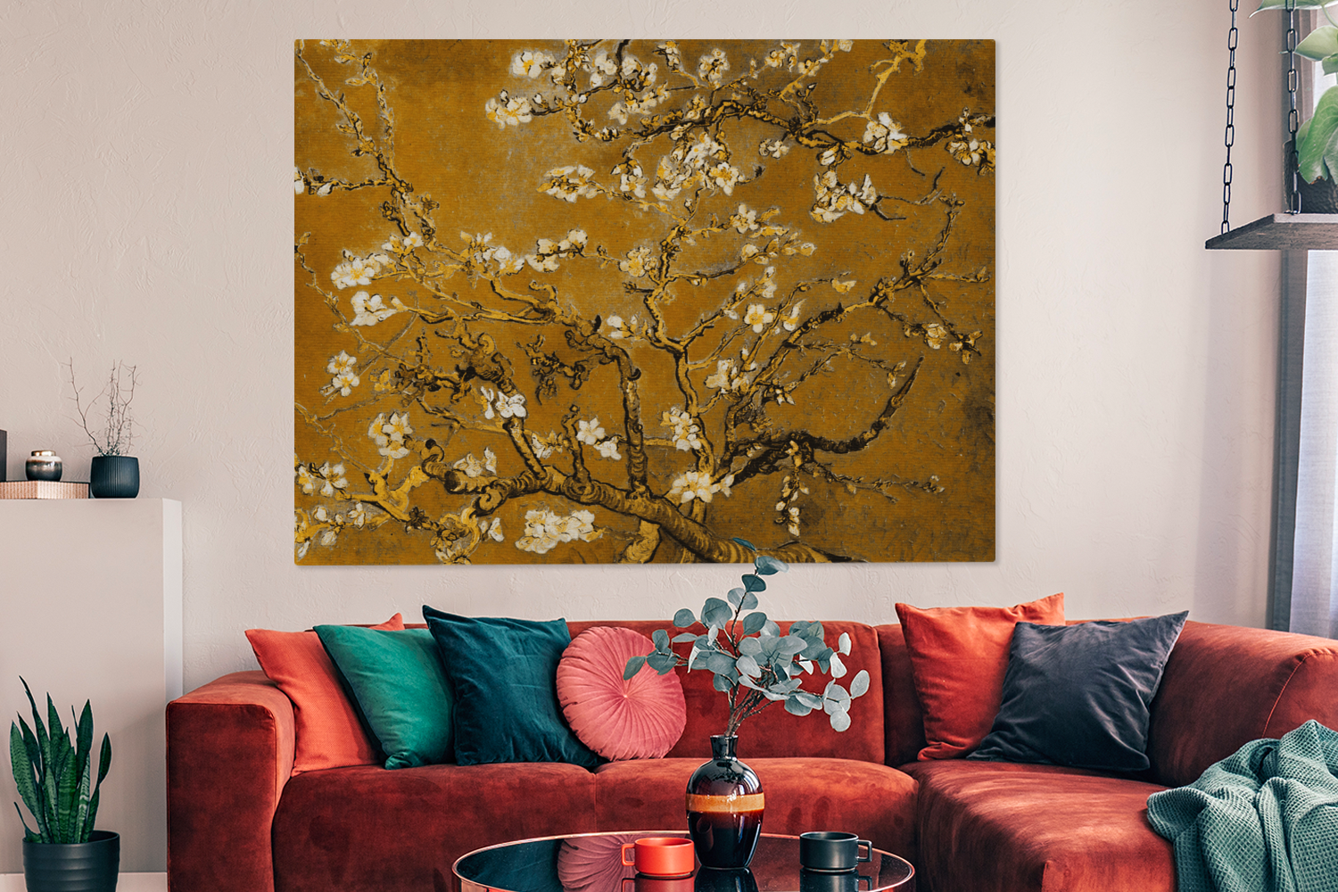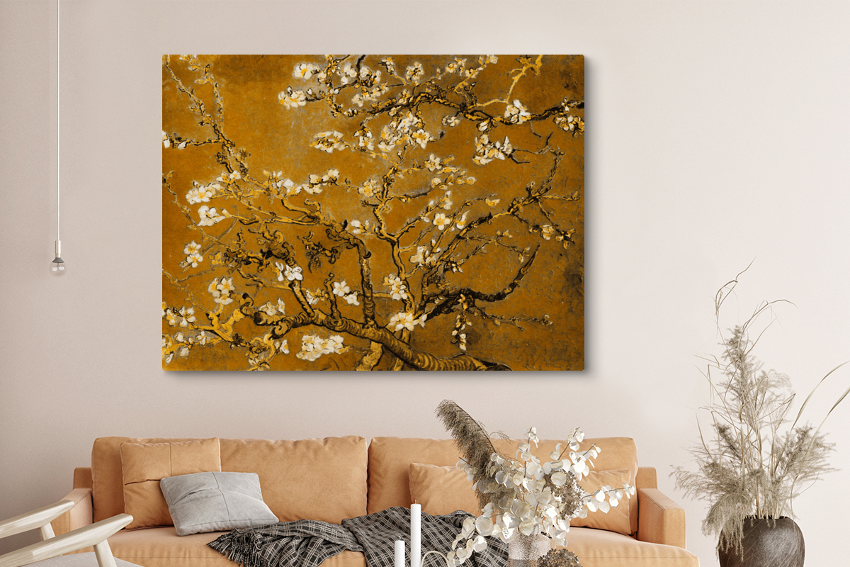 Tableau sur toile Fleur d'amandier - Vincent van Gogh - Or Decoration murale 160x120 cm
