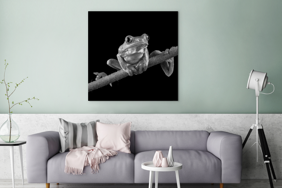 Tableau sur toile Grenouille - noir et blanc Decoration murale 90x90 cm