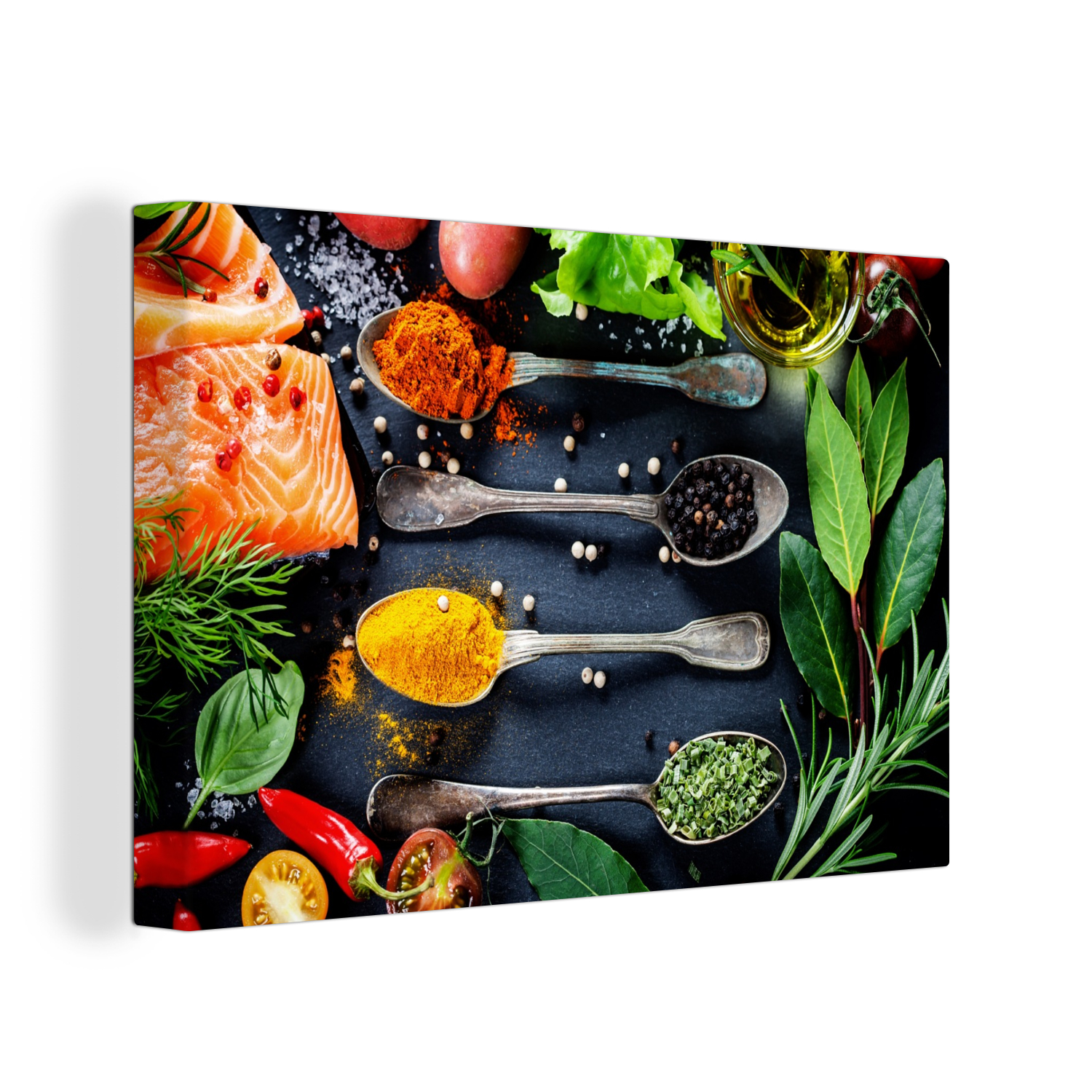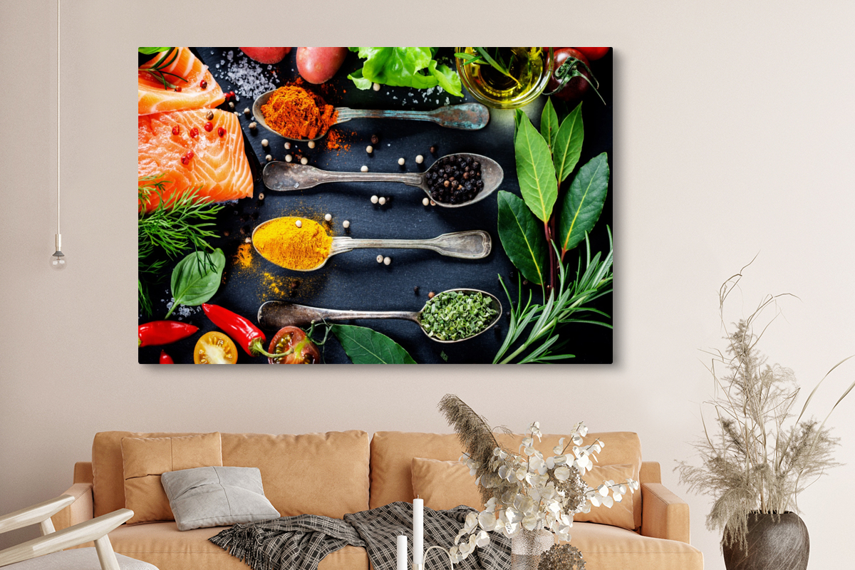 | Libellé | Tableau sur toile Herbes - Cuillères - Cuisine - Épices Decoration murale 150x100 cm |
