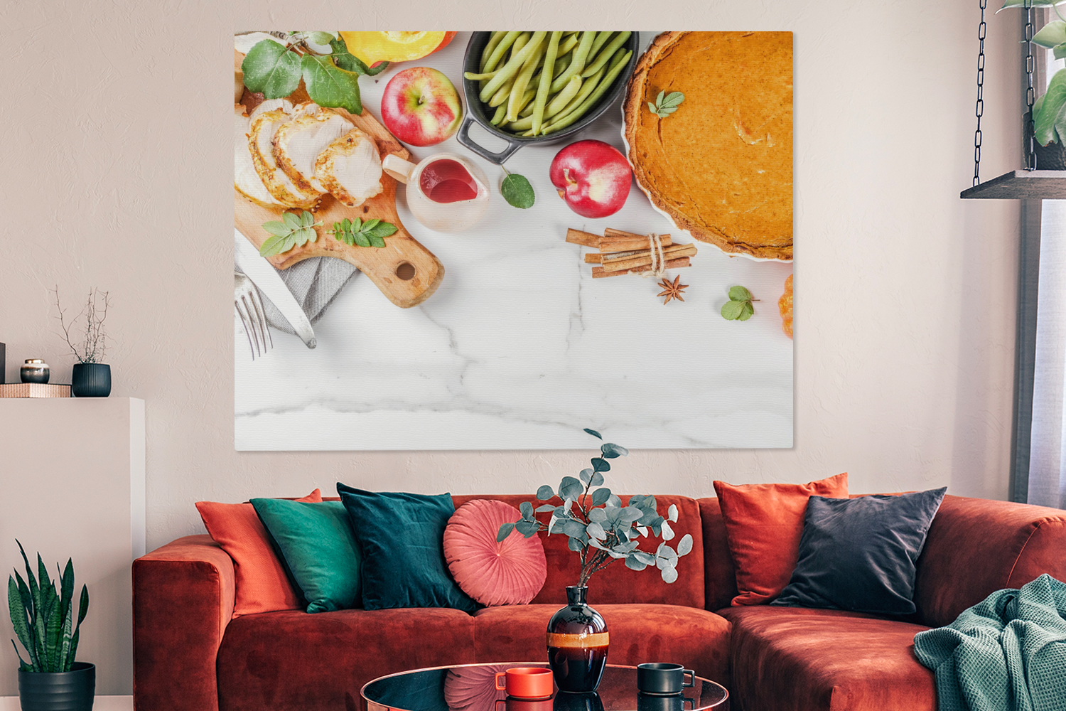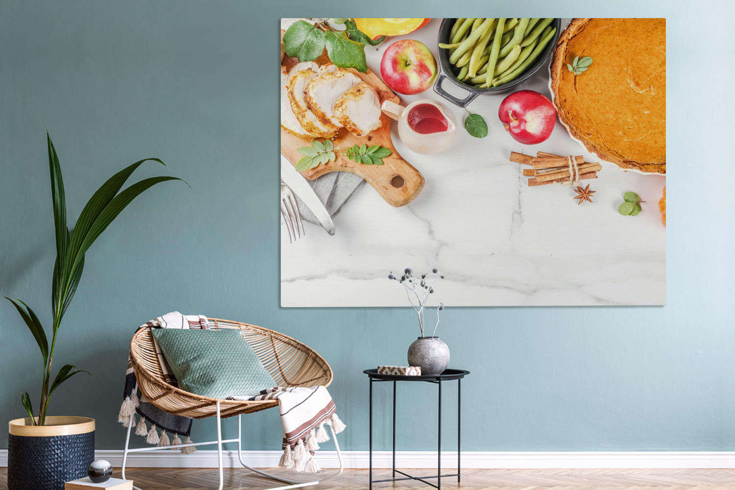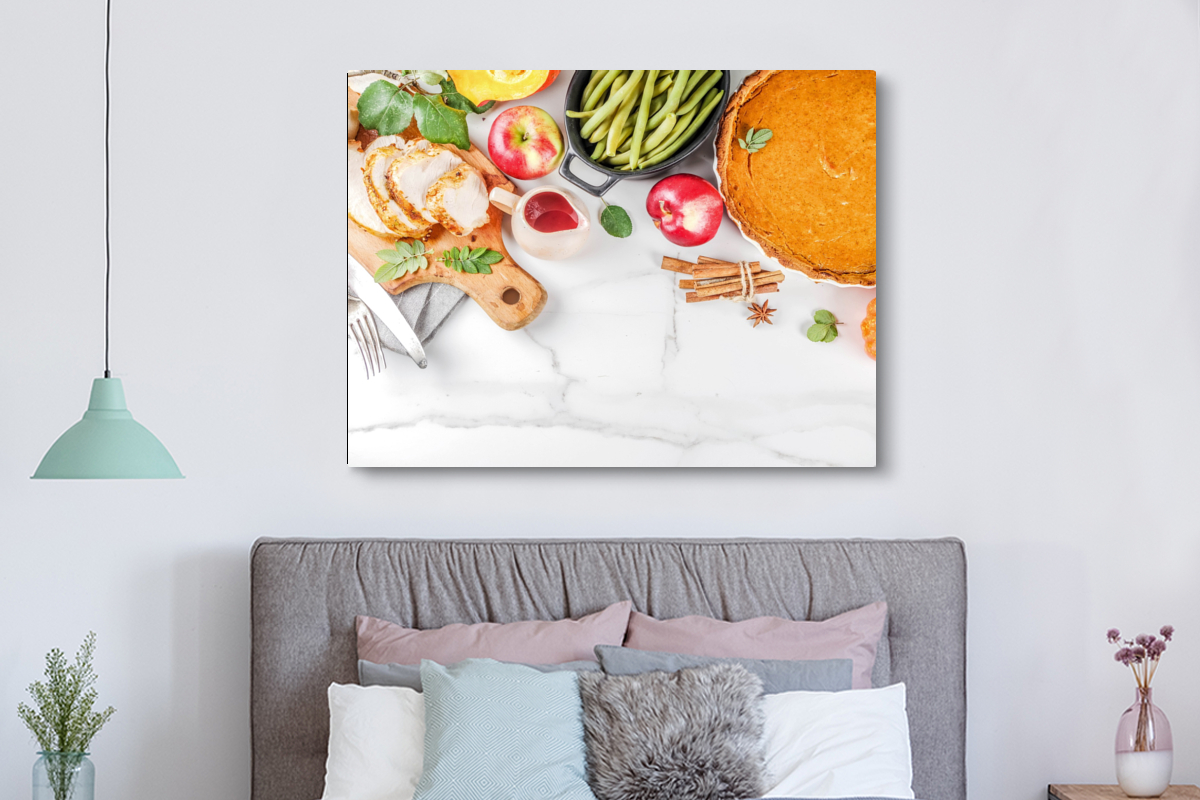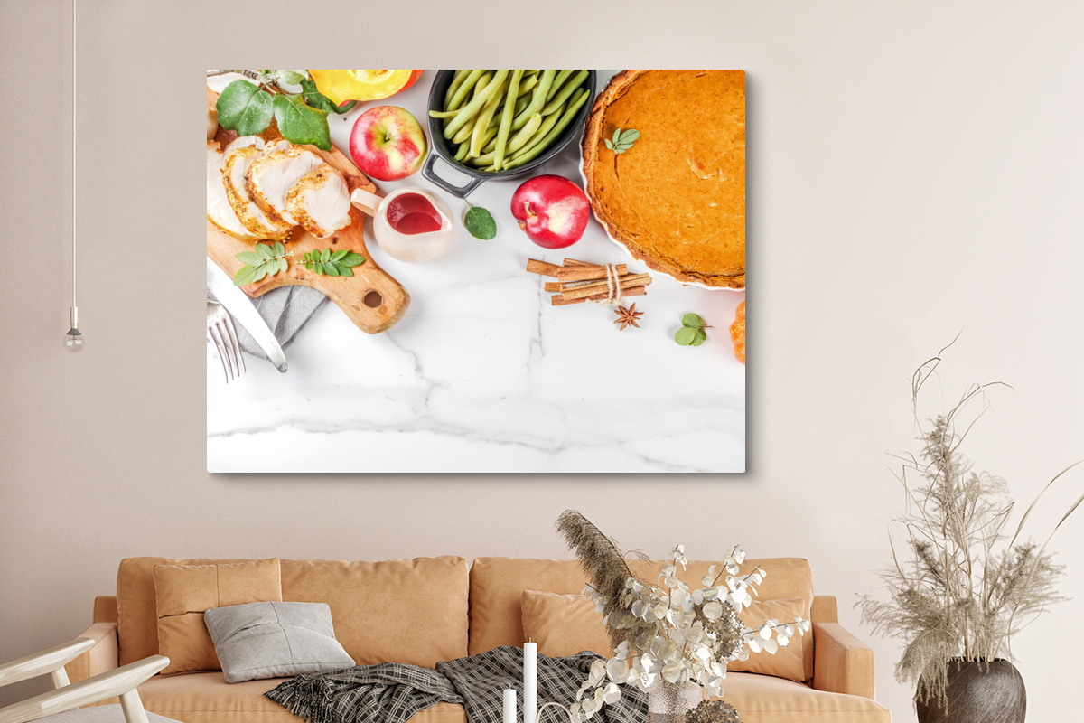 Libellé Tableau sur toile Légumes - Fruits - Viande - Herbes aromatiques Decoration murale 160x120 cm